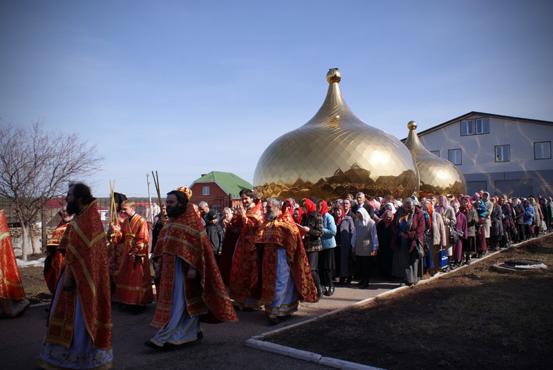 В среду Светлой седмицы архиепископ Казанский и Татарстанский Анастасий возглавил Божественную Литургию в Свято-Вознесенском Архиерейском подворье. Архиерею сослужили клирики собора и духовенство Казанской епархии, представители которого посетили г. Набережные Челны вместе с Владыкой. Во время крестного хода, завершающего Литургию, архиепископ Казанский и Татарстанский освятил новые купола, подготовленные к монтажу на здание собора.