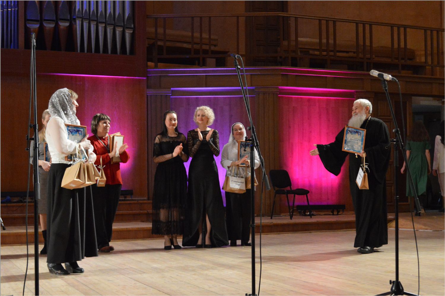 По окончании мероприятия всем коллективам и исполнителям были вручены памятные дипломы и сладкие подарки. В завершение фестиваля отец Андрей вновь поздравил всех с замечательным выступлением, а также особенно поблагодарил администрацию и работников Органного зала, без чьей поддержки это масштабное мероприятие бы не состоялось.