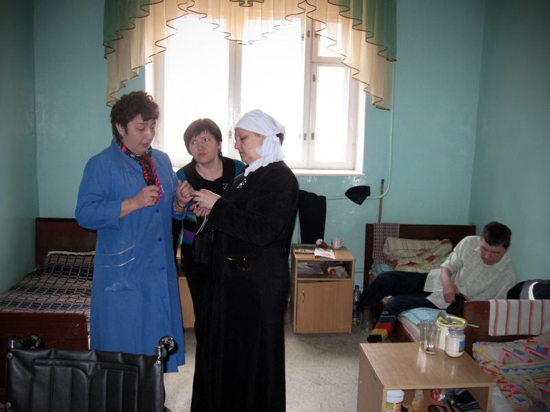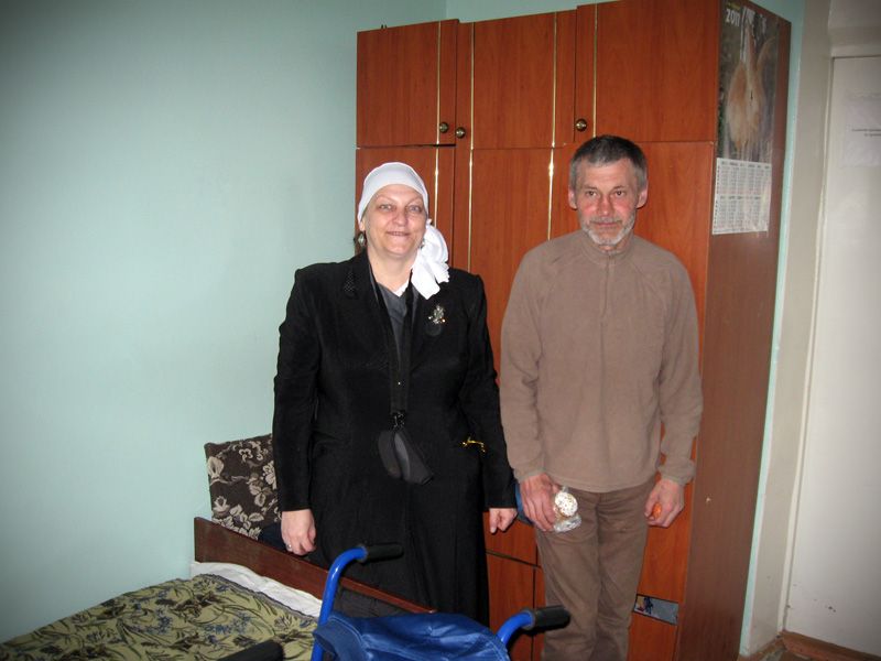 В день Светлого Христова Воскресения 24 апреля работники социального отдела Свято-Вознесенского Архиерейского подворья Елена Кораблева и Юлия Мустаева посетили Центр социальной адаптации лиц без определенного места жительства «Перекресток». Для тяжело больных мужчин-инвалидов с ампутированными ногами их визит стал большой радостью. Они получили в подарок традиционные пасхальные дары – яйца и куличи. Женщины поздравили обитателей Центра с Пасхой, спели тропарь Воскресения, побеседовали с тяжело больными и пообещали в скором будущем посетить их вновь. «Было больно смотреть на их страдания и немощь, – рассказывает Юлия Мустаева. – Но они улыбались! И радовались вместе с нами Великому празднику!»