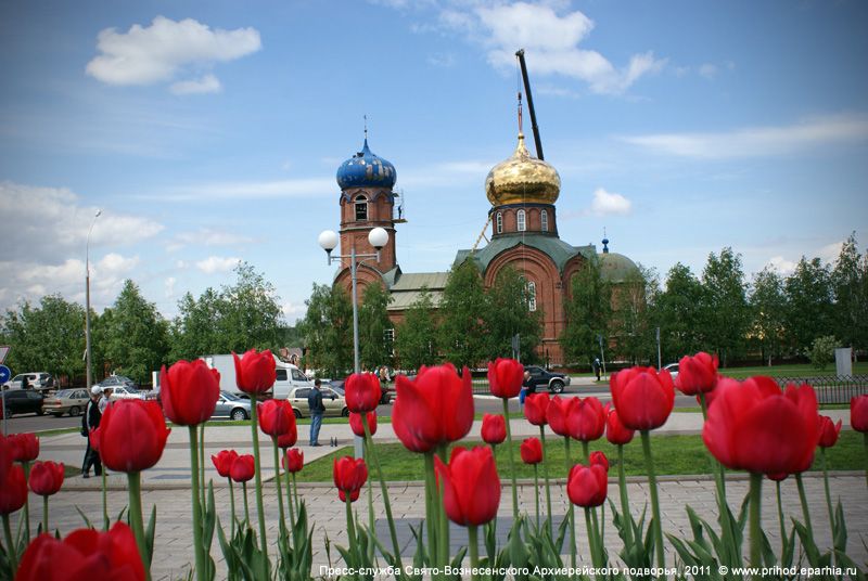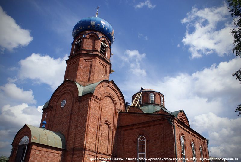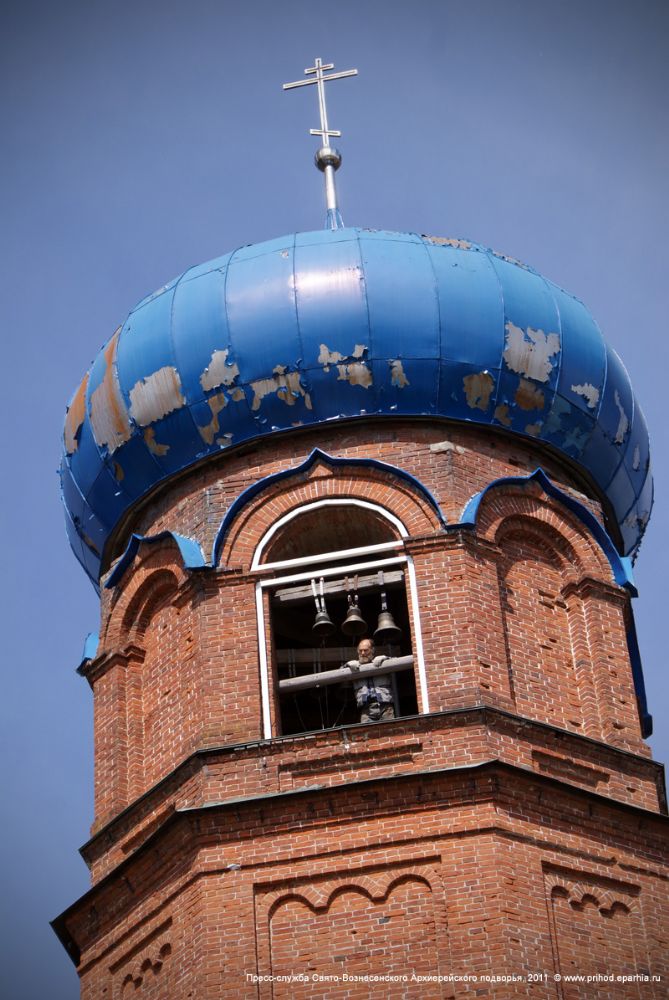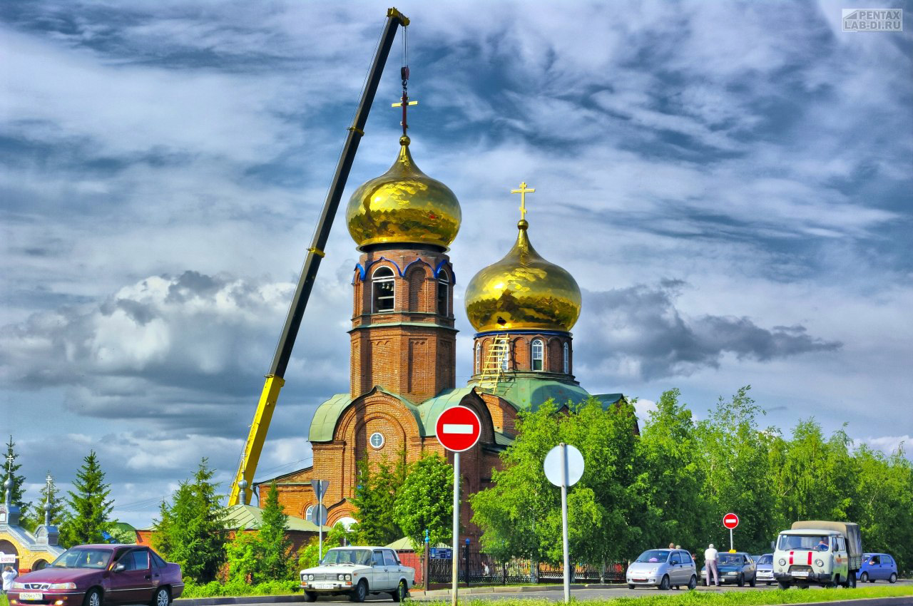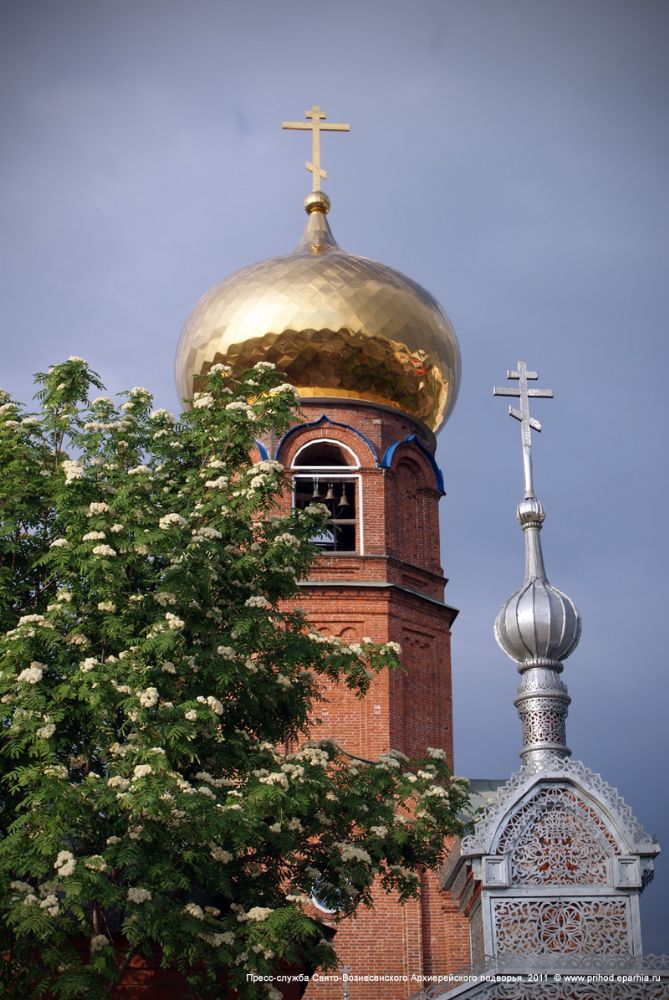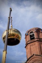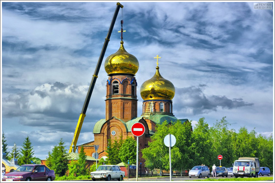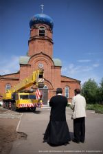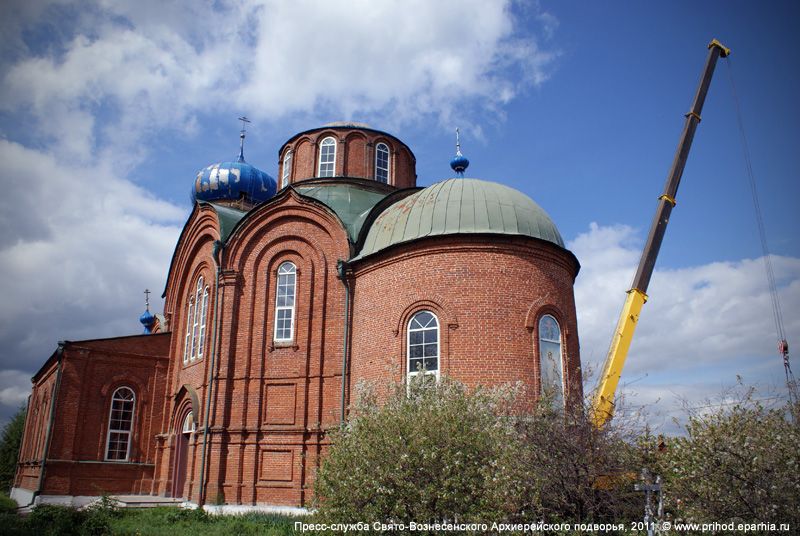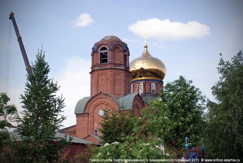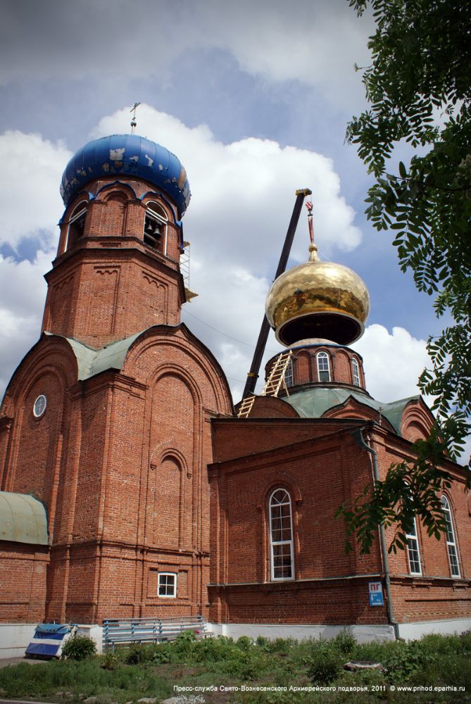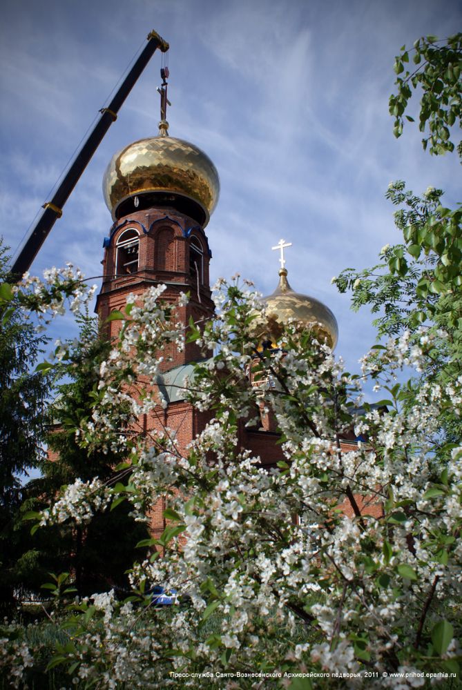 Набережные Челны, 25 мая — Православное Закамье, Юлия Кокорина. На здании Свято-Вознесенского собора закончены работы по реконструкции куполов. 28 мая старые купола были заменены на новые. Работы производились с 9 утра до 17 часов вечера. Перед началом монтажа настоятель собора протоиерей Андрей Дубровин отслужил молебен на всякое благое дело.