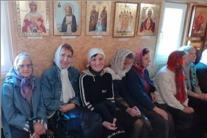 На Литургии паломники причастились Святых Христовых Таин. После Литургии был крестный ход вокруг храма. Затем отслужили молебен на том месте, где заложен фундамент для строительства нового храма.
