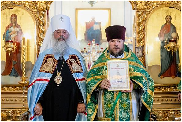 Затем владыка вручил благодарственные письма священнослужителям, которые окормляют детские социальные и специальные учреждения в Республике Татарстан. Наградами были отмечены клирики Закамского благочиния иерей Виктор Кобзов, иерей Дионисий Васильев, иерей Евгений Лазарев и другие клирики Казанской епархии.