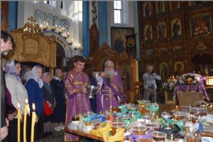 После малого освящения воды была вознесена особая молитва и освящен мед нового урожая, который принесли верующие в этот день.