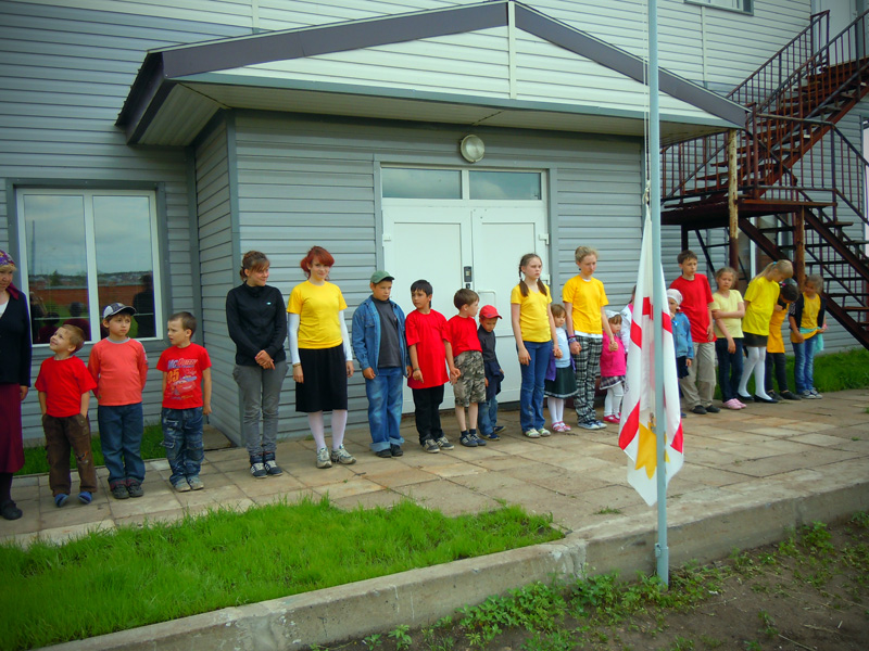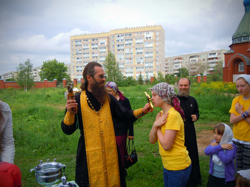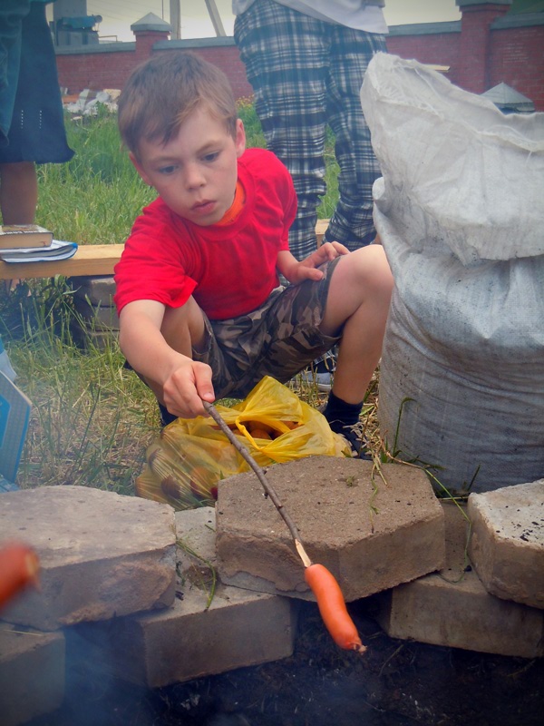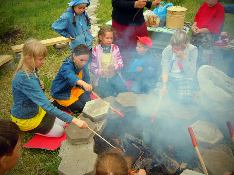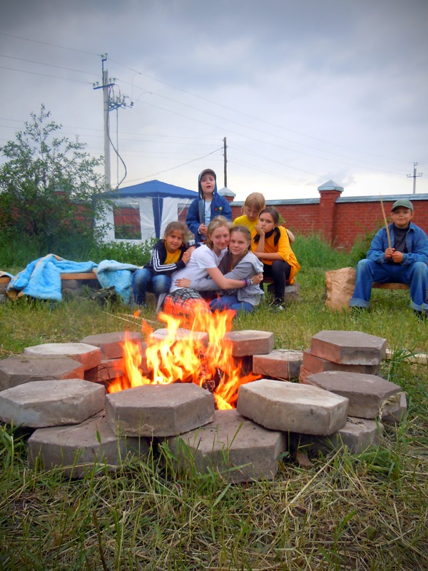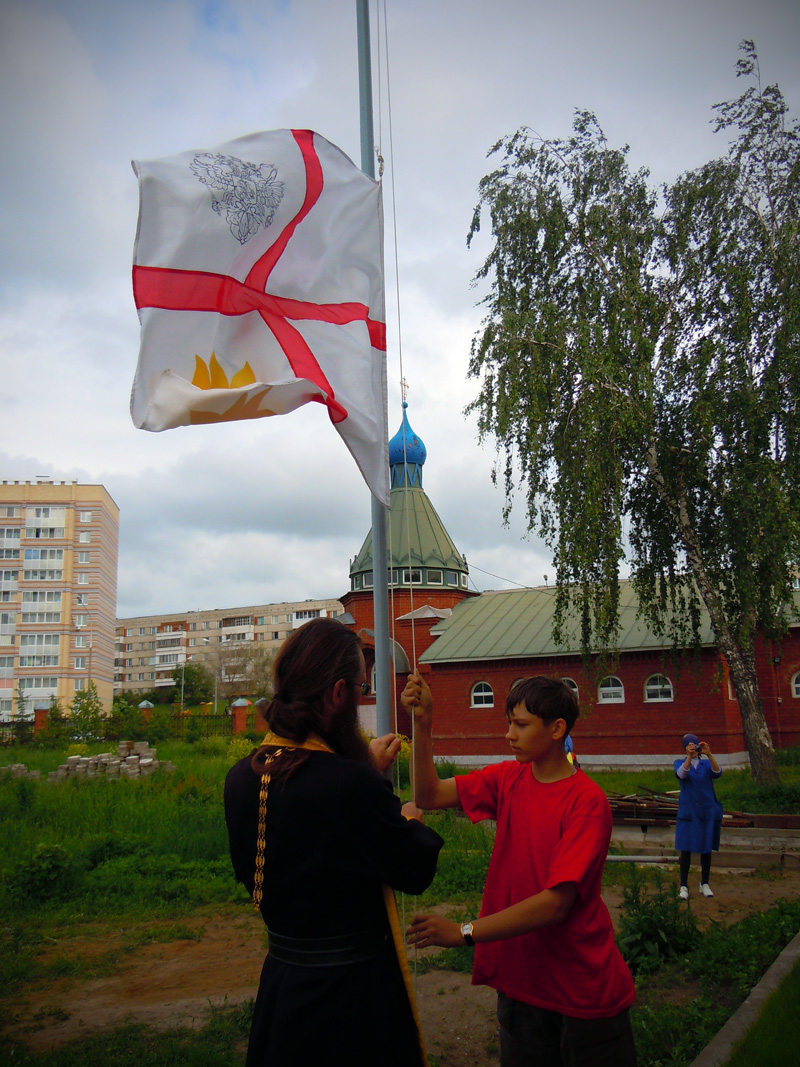 Вечером ребят ждала официальная часть мероприятия. Как только солнце село за горизонт и зажглись первые полосы заката, ребята собрались у костра. После торжественного поднятия флага, иеромонах Иннокентий (Ручкин) выступил с напутственным словом перед участниками смены. Батюшка окропил детей святой водой и дал приложиться ко кресту. После чего ребятам вручили детские молитвословы и акафист «Слава Богу за все». Весь вечер на полянке за храмом слышались крики, смех, песни, доносился сладкий запах травы и костра, жаренных сосисок и хлеба. Открытие удалось!
