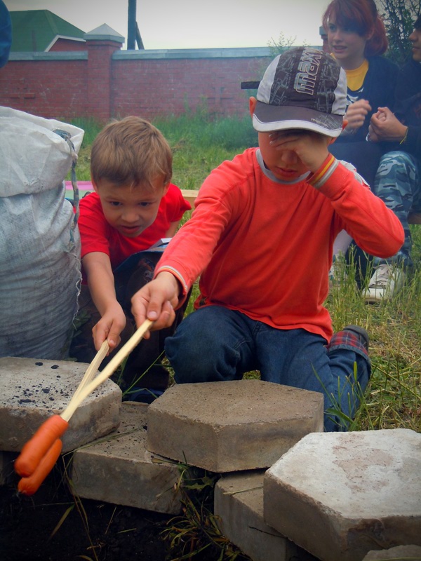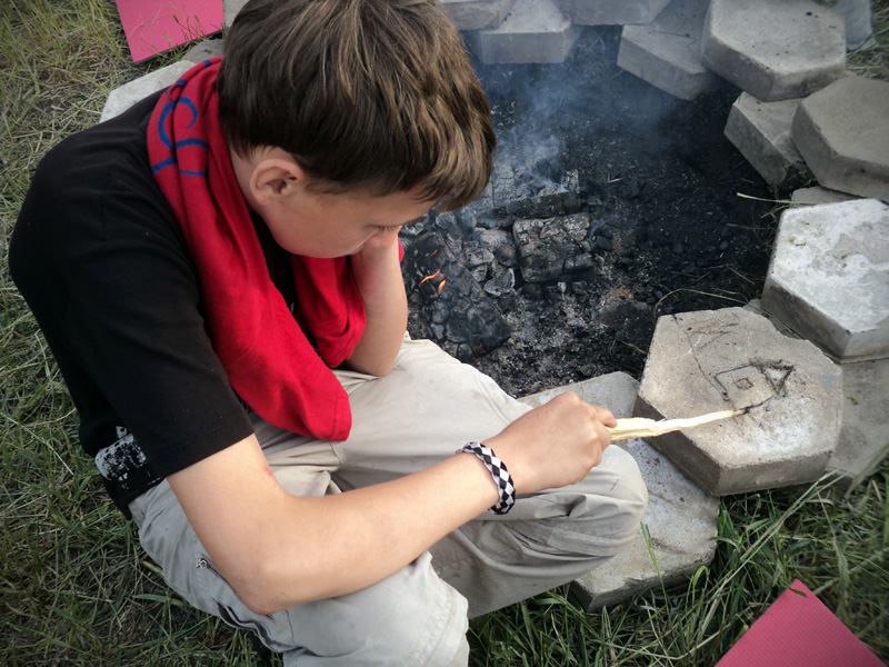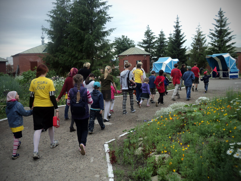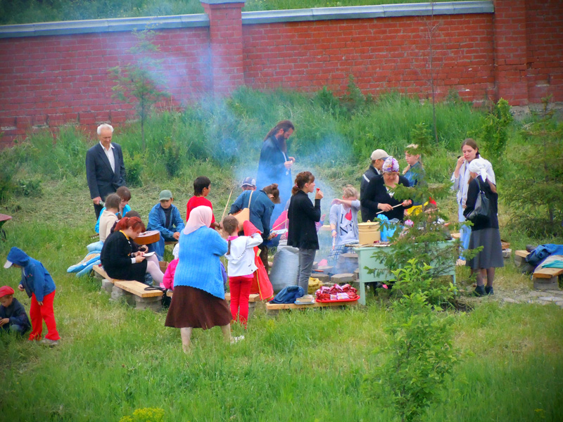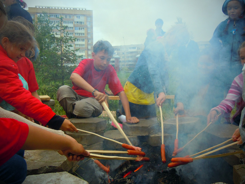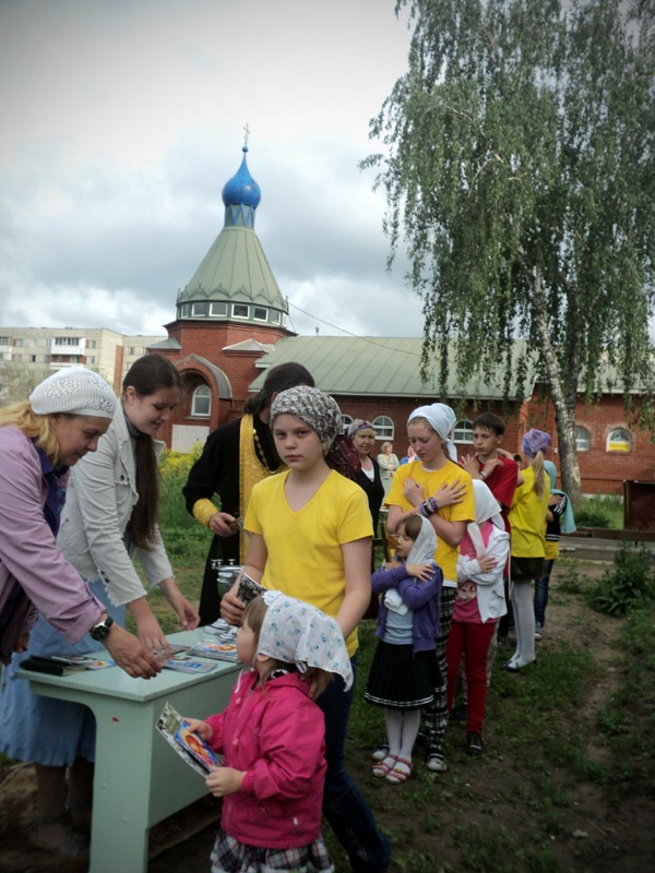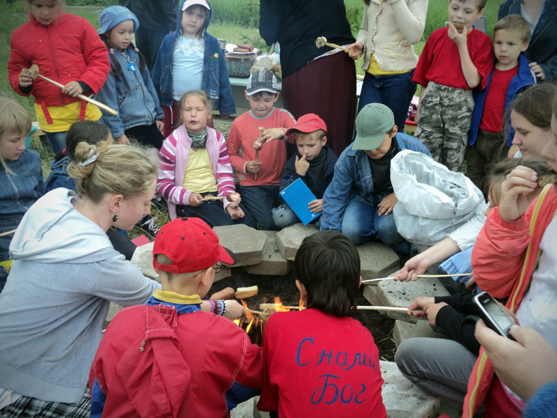 Вечером ребят ждала официальная часть мероприятия. Как только солнце село за горизонт и зажглись первые полосы заката, ребята собрались у костра. После торжественного поднятия флага, иеромонах Иннокентий (Ручкин) выступил с напутственным словом перед участниками смены. Батюшка окропил детей святой водой и дал приложиться ко кресту. После чего ребятам вручили детские молитвословы и акафист «Слава Богу за все». Весь вечер на полянке за храмом слышались крики, смех, песни, доносился сладкий запах травы и костра, жаренных сосисок и хлеба. Открытие удалось!