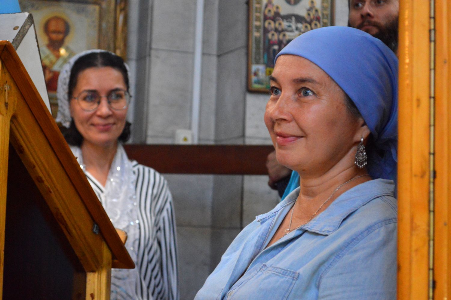После отпуста Литургии протоиерей Андрей Дубровин поздравил регента хора Наталью Гладышеву с юбилеем и подарил ей цветы и богослужебную просфору.