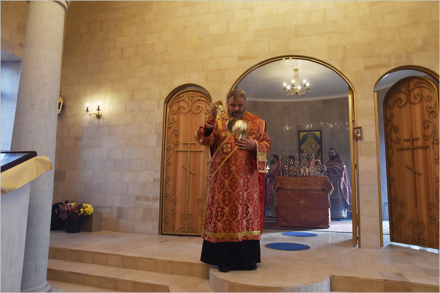 Дьяконский чин возглавил протодиакон Дмитрий Половников. За богослужением пел приходскогой хор Покровского собора г. Елабуги под управлением Валентины Лепихиной. На сугубой и мирной ектениях были вознесены молитвы о Российском воинстве и о мире.