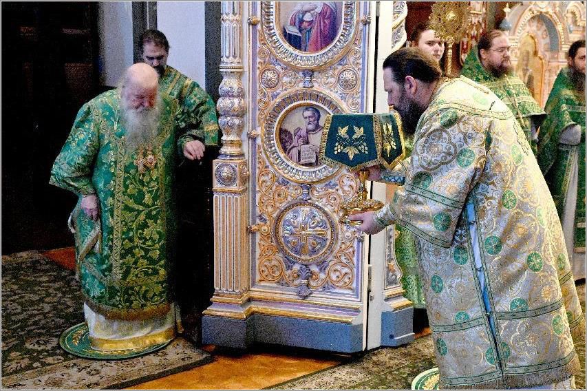 Вместе с архипастырями молились насельники монастыря в священном сане, монахи и многочисленные паломники.