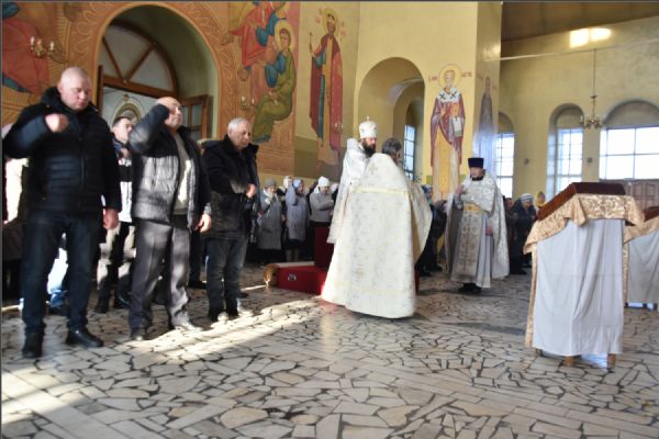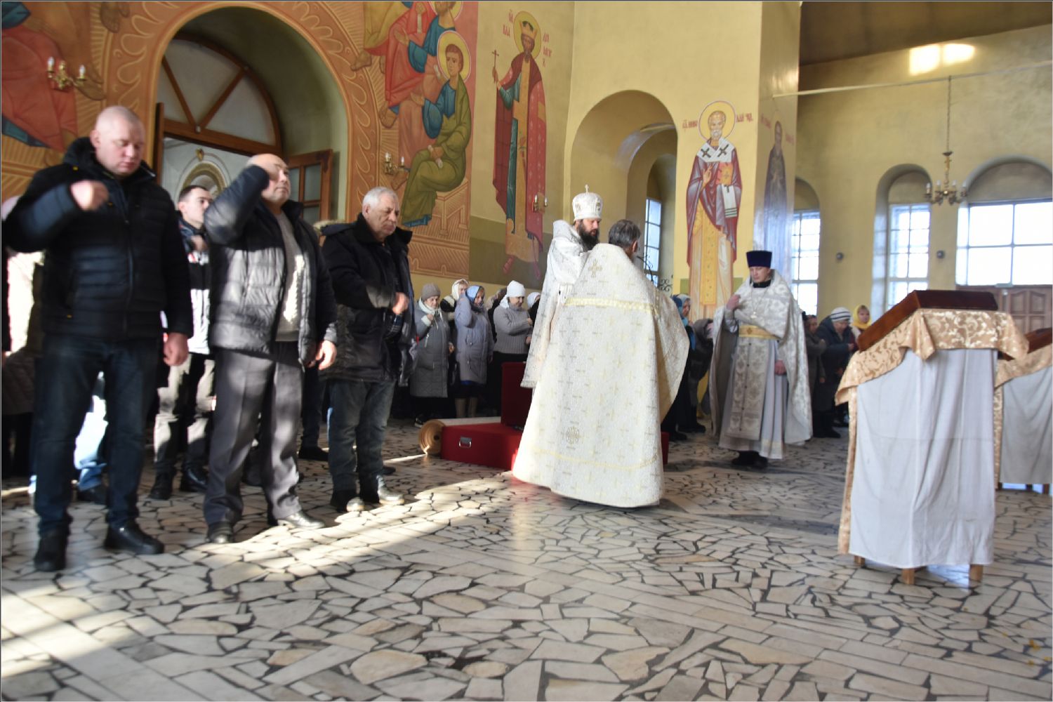 На сугубой ектении была вознесена молитва о Российском воинстве и о мире, на мирной ектении — заупокойные прошения. Проповедь по запричастном стихе произнес иерей Василий Имуков.