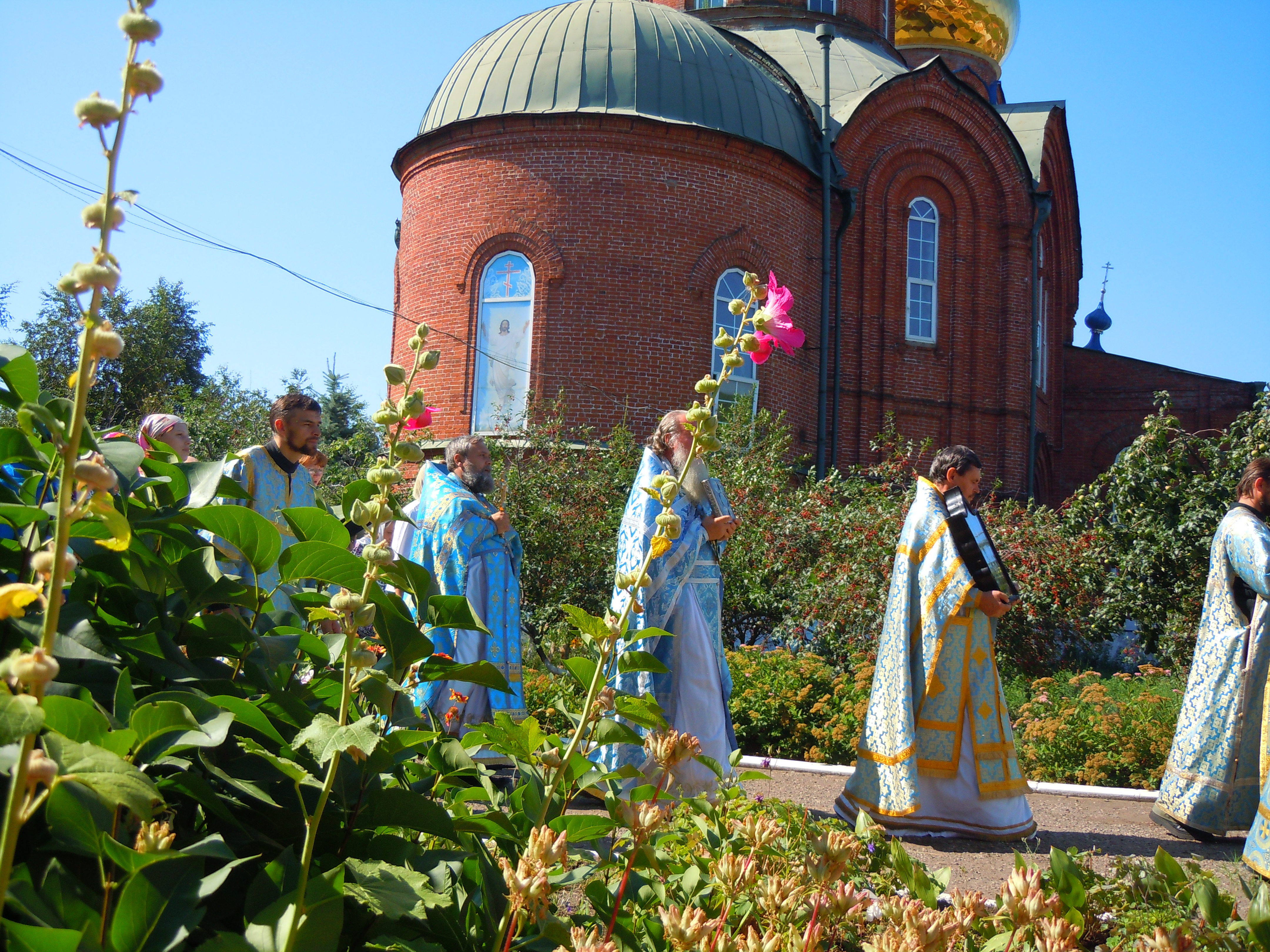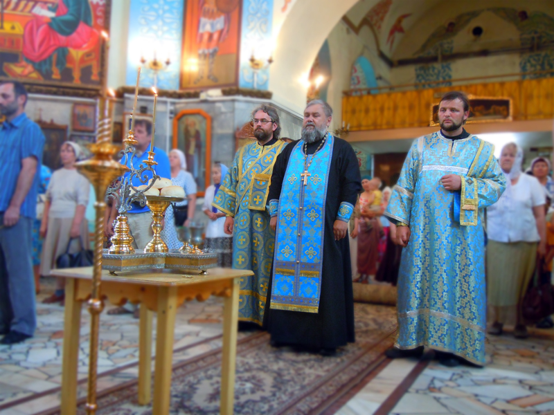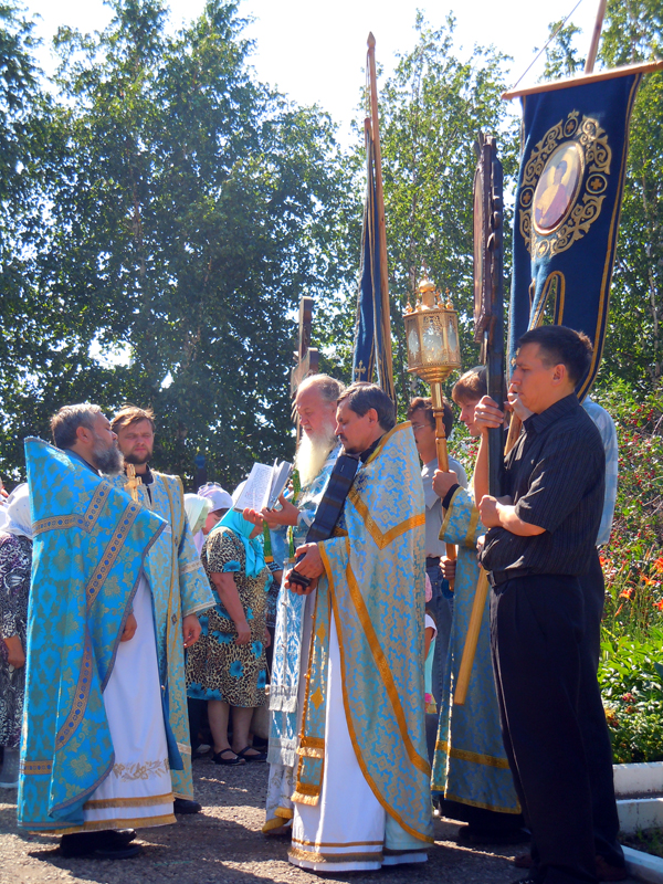 После причастия верующих Тела и Крови Христовых, священнослужителями Свято-Вознесенского собора протоиереем Андреем Дубровиным, протоиереем Александром Филькиным, иереем Георгием Опариным был отслужен праздничный молебен, после которого прошел крестный ход. Верующие словно мистически соединились с тем шествием, которое проходило в престольном граде Казани из Благовещенского собора Кремля к месту постоянного пребывания иконы Божией Матери – Казнко-Богородицкому монастырю. Люди шли под открытым небом, неся хоругви и иконы, и славили Пречистую Владычицу, Которая и сейчас невидимо покрывает всех Своим омофором.