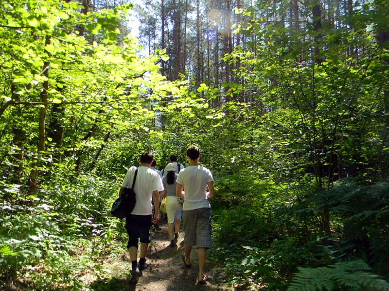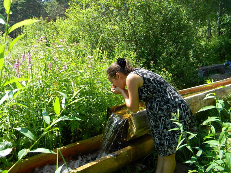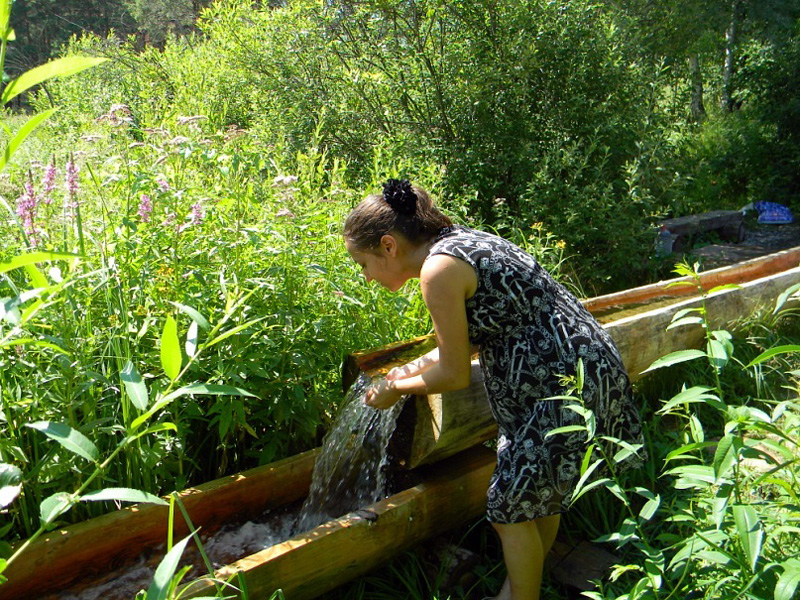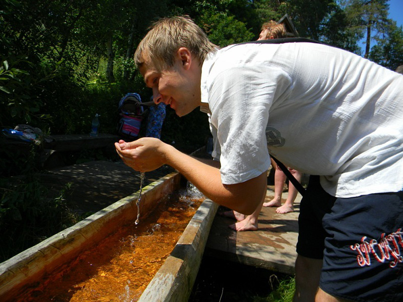 Оставив автомобили недалеко от трассы, ребята решили дойти до святого источника пешком по лесному массиву Малый Бор национального парка «Нижняя Кама» и ничуть не пожалели. Утопающий в зелени лес, живописный растительный и животный мир, пение птиц − созданное Богом царство природы завораживает! Лесная тропа вывела ребят к святому источнику, где множество желающих с самого раннего утра набирали воду и окунались в купальне. Кто-то специально приезжает сюда для исцеления болезней. Расположение родника на границе двух биотопов – соснового леса и торфяных болот, придаёт дополнительную привлекательность этому месту.