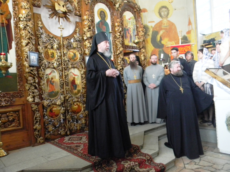 На центральном аналое была положена святыня праздника − Почаевская икона Божией Матери, к которой с молитвою прикладывалось множество людей, пришедших на богослужение. Давно известно, что молящиеся возле чудотворной иконы избавляются от недугов, грешники вразумляются, из плена освобождаются узники. Она известна всему славянскому миру: ее чтут в России, в Боснии, Сербии, Болгарии и других странах. О важности этой святыни рассказал в своей проповеди после окончания Всенощного бдения и архиепископ Анастасий. Он особо подчеркнул, как верующие всегда ценили эту икону: «С древних времен люди ездили по святым местам, в том числе и на Почаевскую гору, чтобы принести поклонение Царице Небесной, получить ее благословение. Сейчас мы все больше живем вне всего этого, не хотим посмотреть на нашу Отчизну, туда, куда должны устремляться». Владыка поздравил всех с праздником и обратился с пожеланием: «Пусть Царица Небесная будет с нами во все дни жизни нашей, поможет отрываться от земных забот, вспоминать, чем жили предшествующие нам поколения, в чем заключается смысл нашего бытия. Этот смысл заключается не в борьбе за какие-то внешние материальные блага, а в борьбе с врагом спасения, в искоренении страстей. Только так можно почувствовать, насколько глубока помощь Богородицы, ее молитва перед Господом», – отметил Владыка.