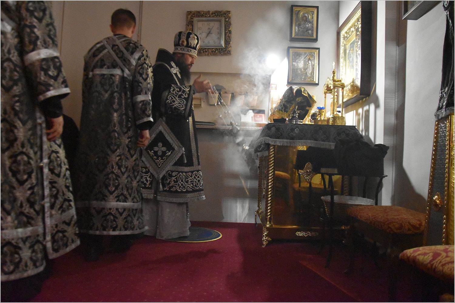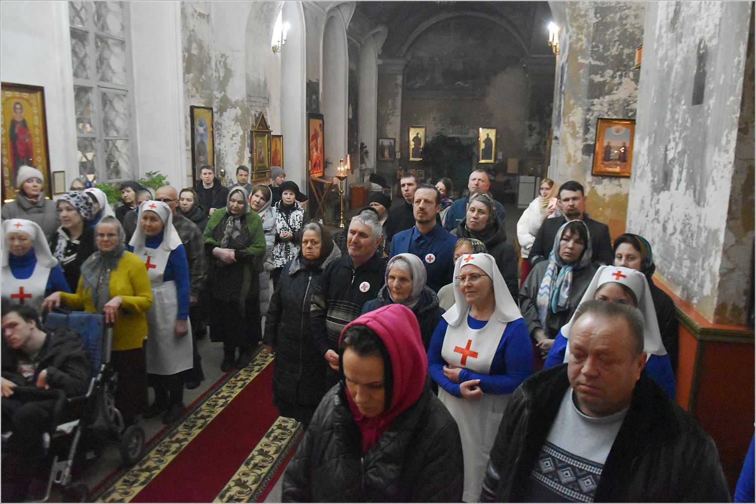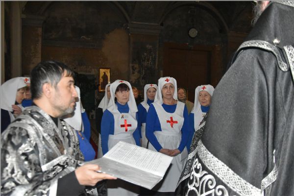 Перед началом вечерни возвел сестер милосердия города Елабуги в звание старших сестер. На служение подвигу милосердия получили благословение также мужчины-добровольцы. Братьям милосердия епископ вручил значки «Брат милосердия», а после службы всем вместе — акафист свт. Тихону Задонскому, и поздравил всех со Святым Причастием. Было сделано общее фото на память.