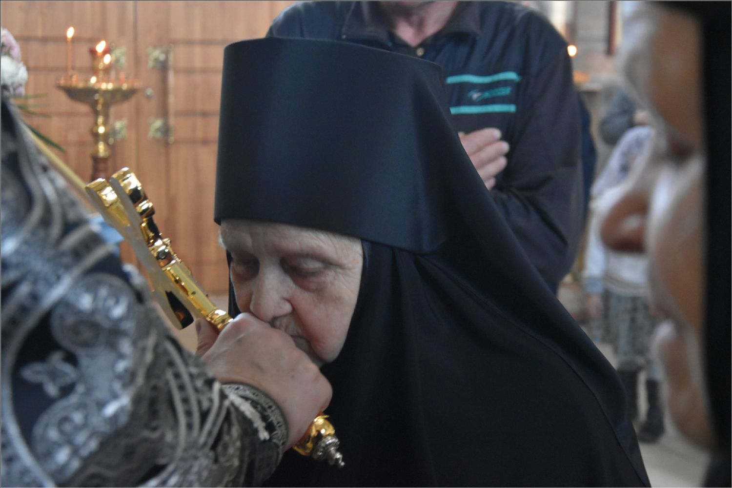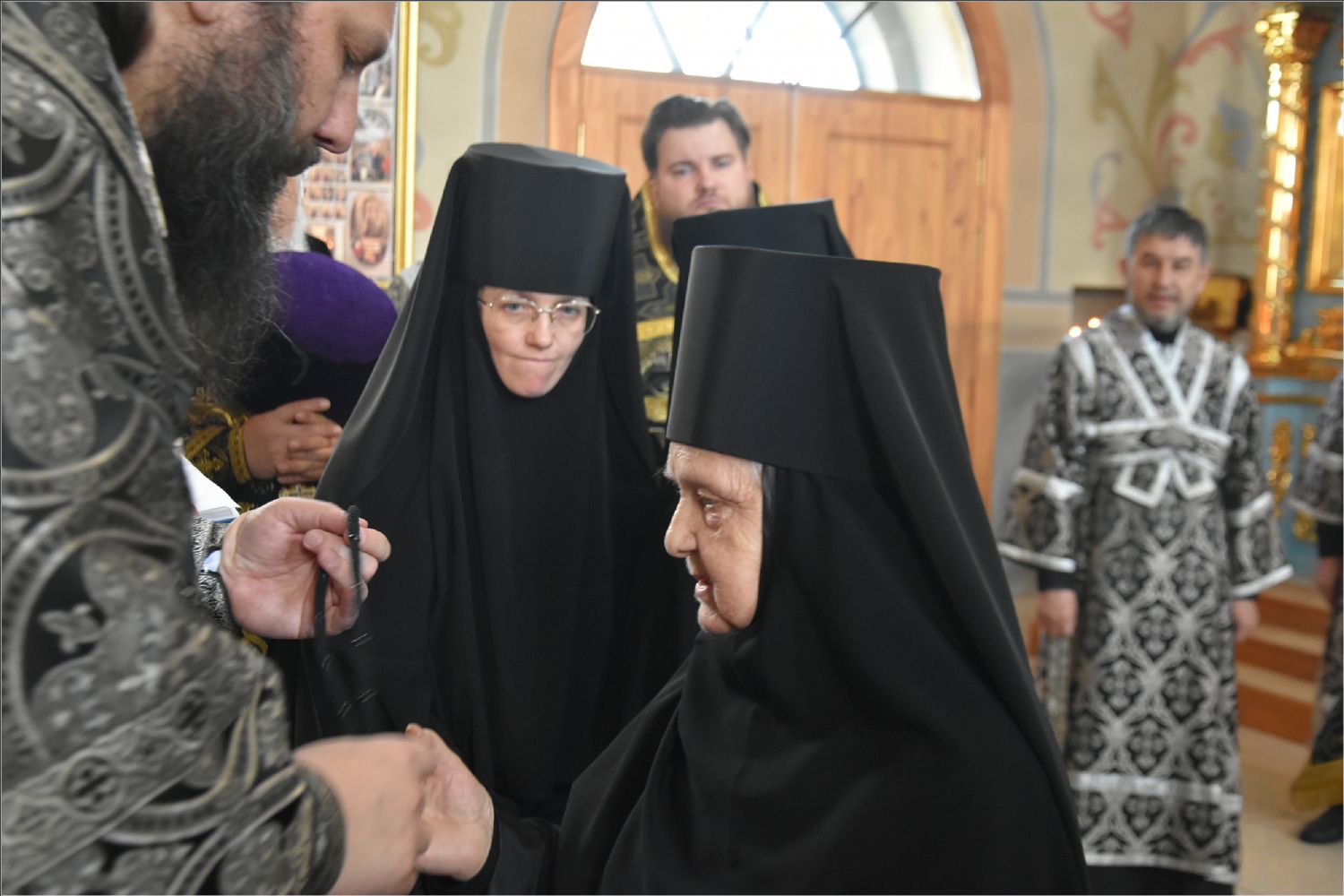 После облачения к Литургии епископ Гавриил совершил иноческий постриг послушницы Марии. Владыка вручил инокиню Марию ее духовной наставнице игумении Вере (Шевченко).