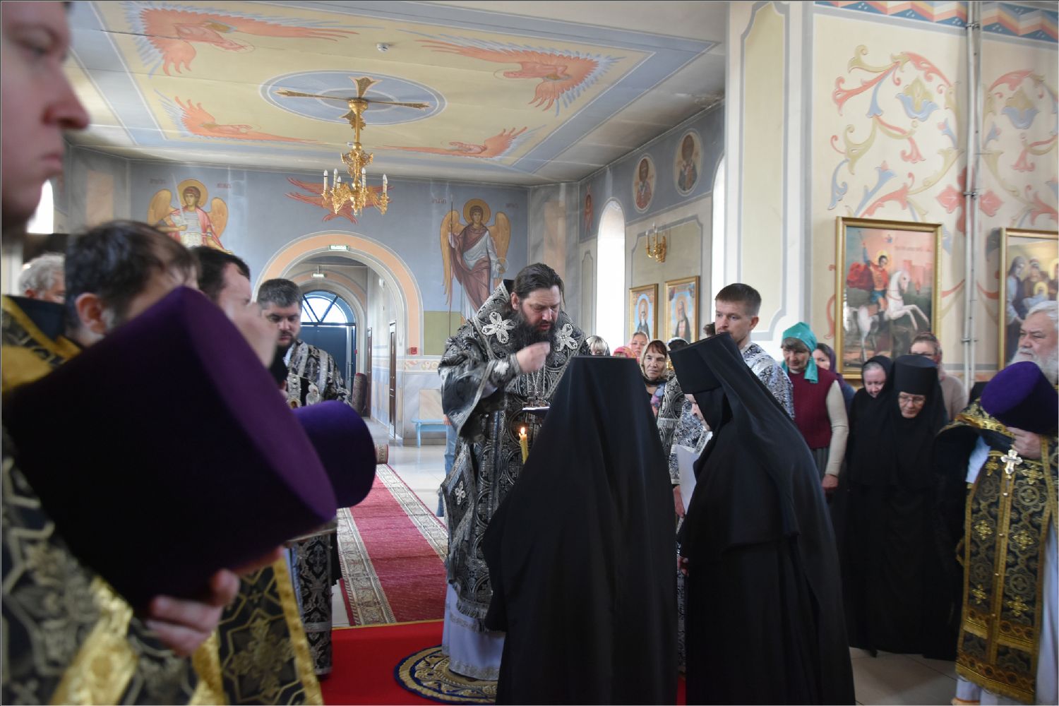 Во время Литургии Преждеосвященных Даров было прочитано Евангелие Великого понедельника и вознесена молитва о мире. За богослужением причастились насельницы обители во главе с игуменией, прихожане храмов Елабуги.