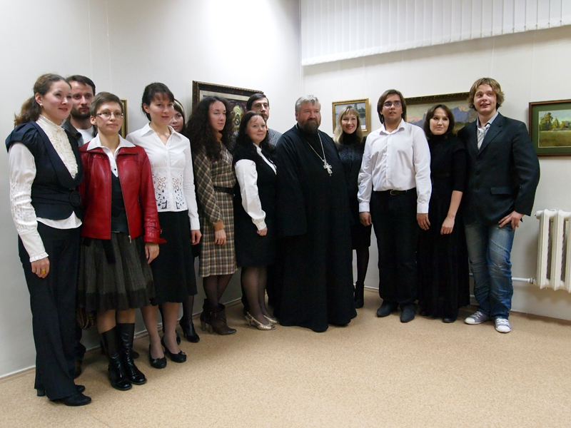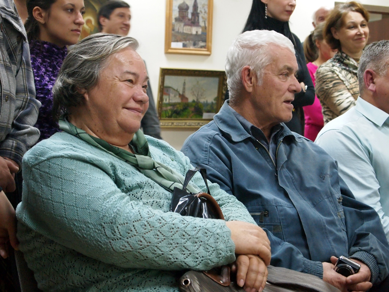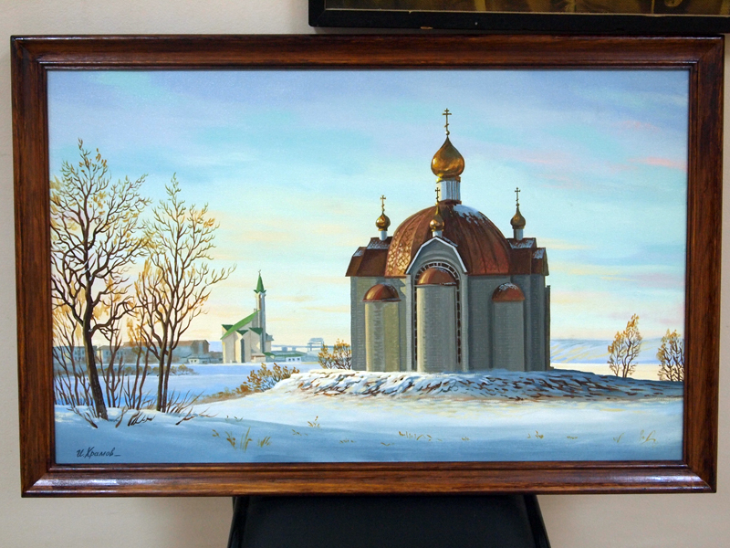 Свой творческий заряд песен и стихов внес хор храма святых бессребренников Космы и Дамиана, исполнив не только церковные песнопения, но и такие глубокие народные песни, как «Русская рябина», «Покуда кровь моя бурлит». Теплые слова благодарности прозвучали и от творческих деятелей: «Отец Олег всегда меня поддерживал и, конечно, для нас сегодня эта выставка – большой праздник», – отметил нижнекамский художник Владимир Никольский. Кроме того, коллекция отца Олега уже на вернисаже пополнилась еще одной картиной. Художник Илья Храмов подарил работу с изображением храма Серафима Саровского.