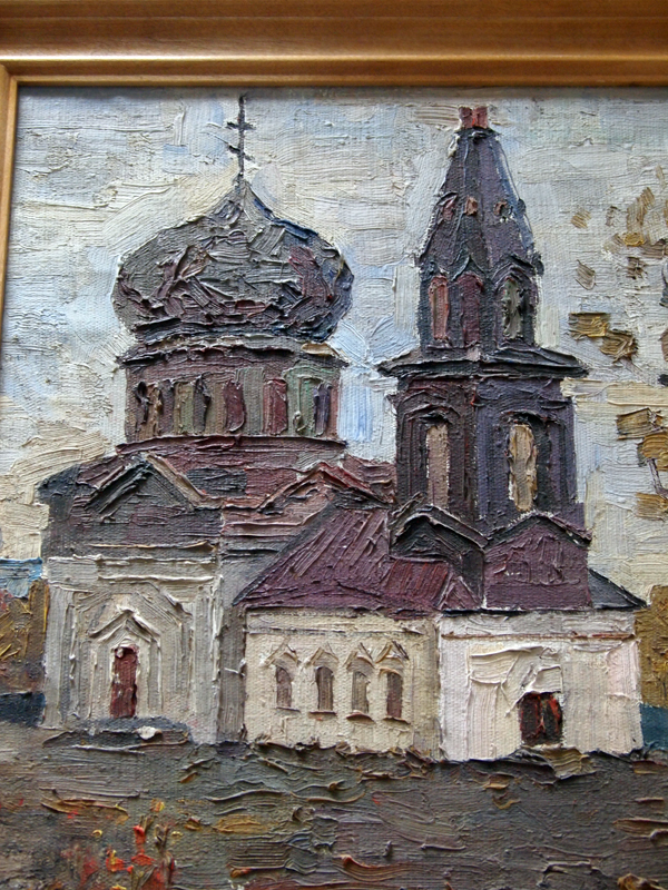 Интересно, что многие из картин таинственно находились на чердаках и в заброшенных храмах. Так одну из картин отец Олег случайно обнаружил на чердаке дома в Елабуге и назвал ее «Перед грозой», где изображены курочки, которые возятся в пыли. Скорее всего, эту картину нарисовали студенты в конце 19 столетия, когда их приводили расписывать храмы. Также работников картинной галереи особенно заинтересовала гравюра Ивана Пожалостина 1872 года «Несение креста».