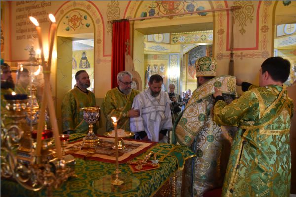После Евхаристического канона была совершена первая хиротония во диакона в Набережночелнинской епархии. Архиерей совершил рукоположение старосты кряшенского прихода иконы Божией Матери «Неупиваемая Чаша» города Набережные Челны иподиакона Михаила Миронова во диаконы. Представители кряшенской общины города пришли молитвенно поддержать новорукоположенного, многие были в национальных одеждах.