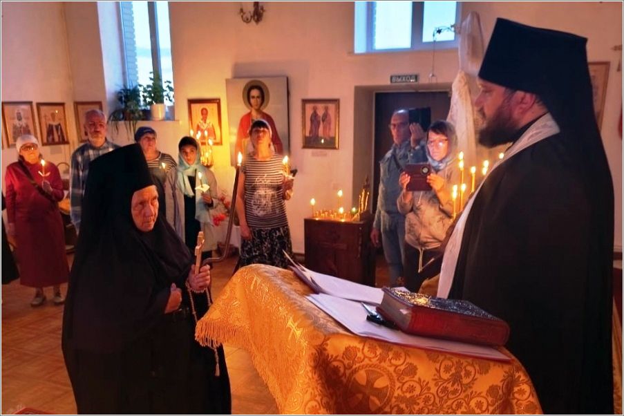 Вечером 25 августа 2025 года благочинный Елабужского церковного округа, настоятель Спасского собора Елабуги иеромонах Кирилл (Забавнов), по благословению епископа Набережночелнинского и Елабужского Гавриила, совершил чин пострижения в малую схиму рабы Божией Екатерины.