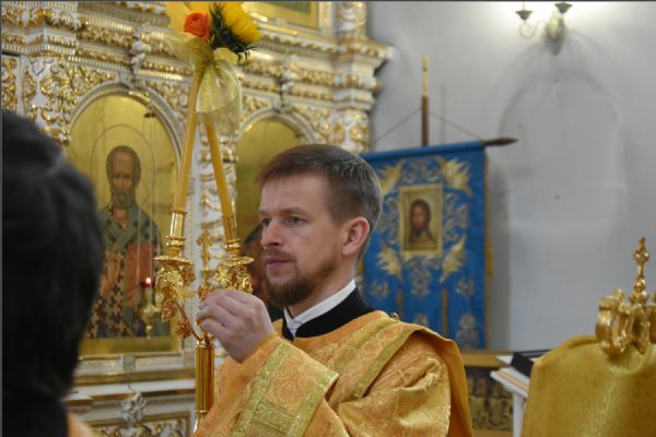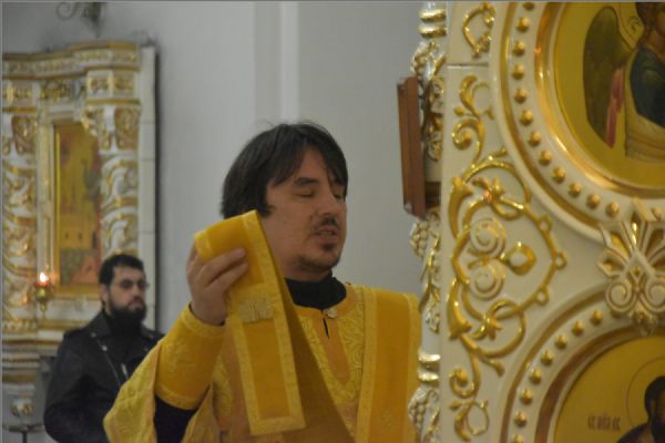 На Литургии на мирной и сугубой ектениях были вознесены молитвы о Российском воинстве и о мире. По запричастном стихе проповедь произнёс иерей Иоанн Можаев.