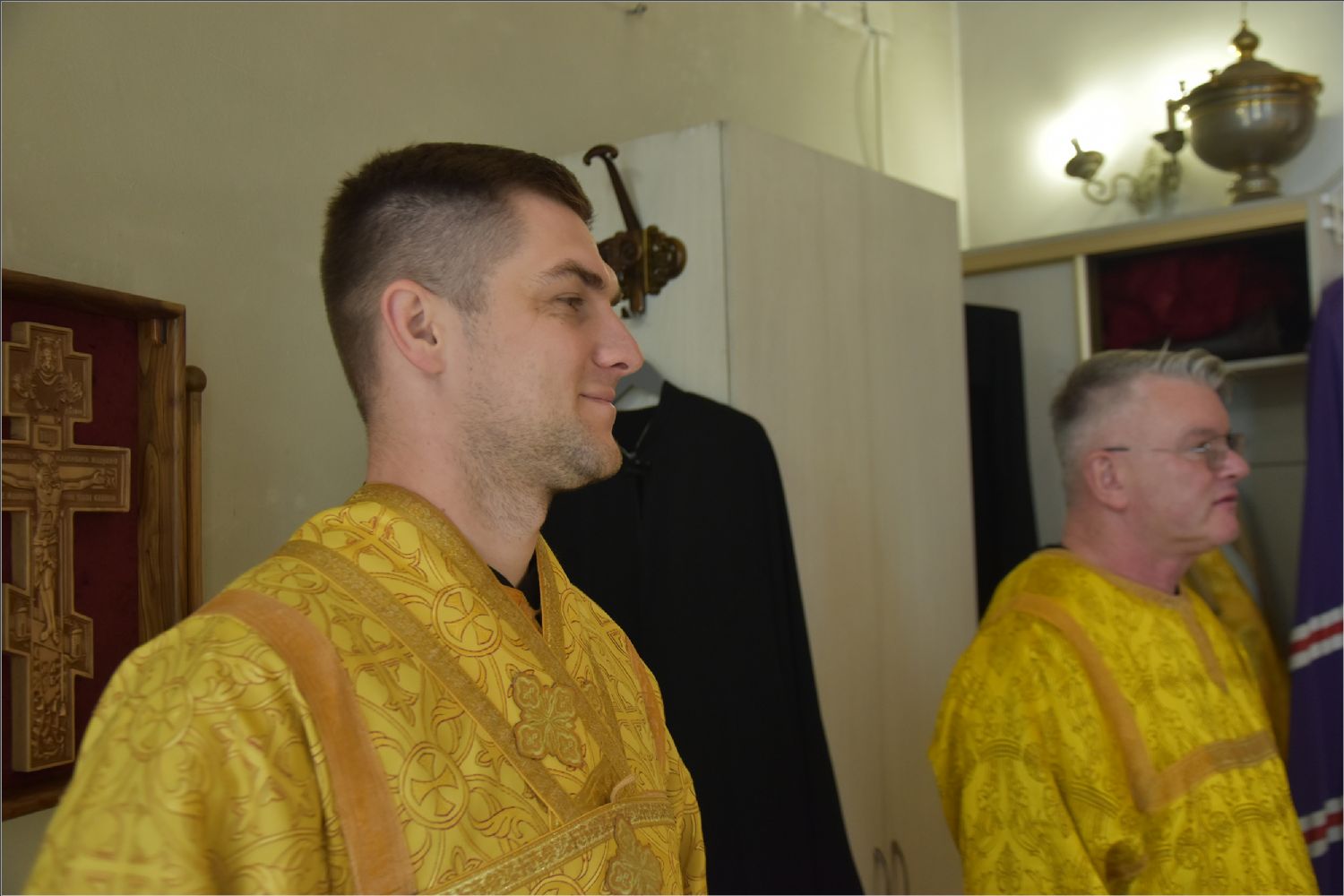 Архипастырю сослужили благочинный Закамского округа протоиерей Андрей Дубровин, клирики прихода иерей Алексий Носов и иерей Иоанн Можаев. Диаконский чин возглавил протодиакон Дмитрий Половников. Песнопения исполнил приходской хор под управлением Татьяны Вылку.