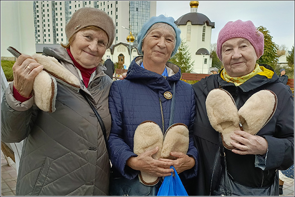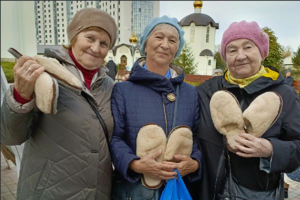 Социальный отдел епархии подготовил для пожилых людей тёплые подарки: одеяла, меховые тапочки, простыни на резинке, чай и сладости.