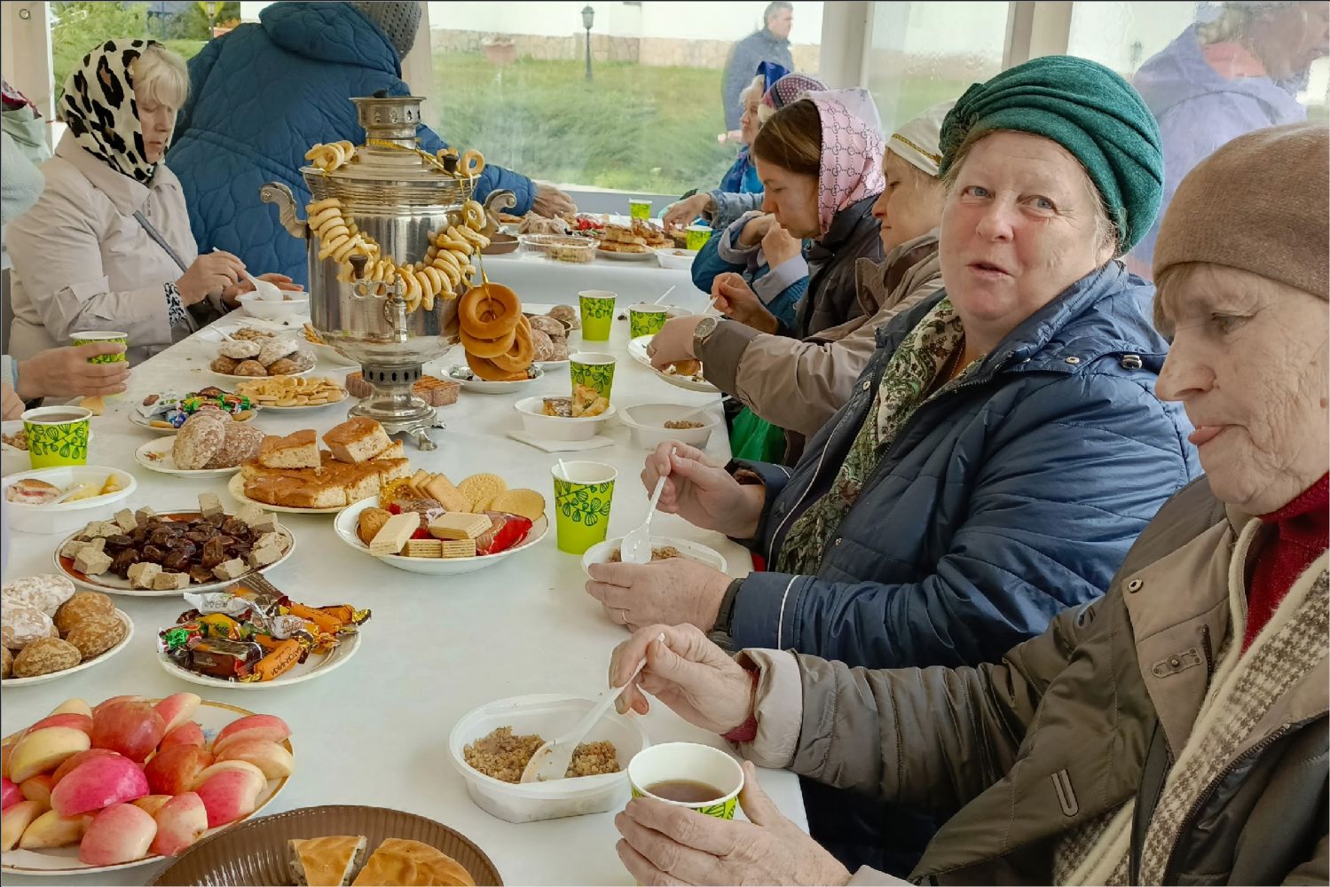 В храмах были организованы праздничные столы с горячей трапезой, ароматным чаем, пирогами и сладостями. Дети из воскресных школ подготовили особые поздравления и вручили пожилым прихожанам открытки, сделанные своими руками.