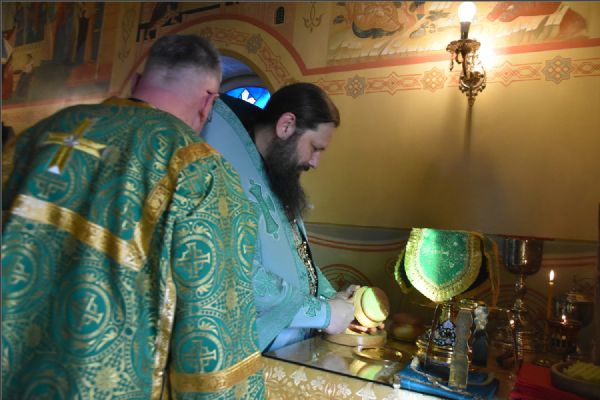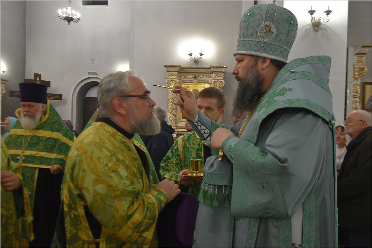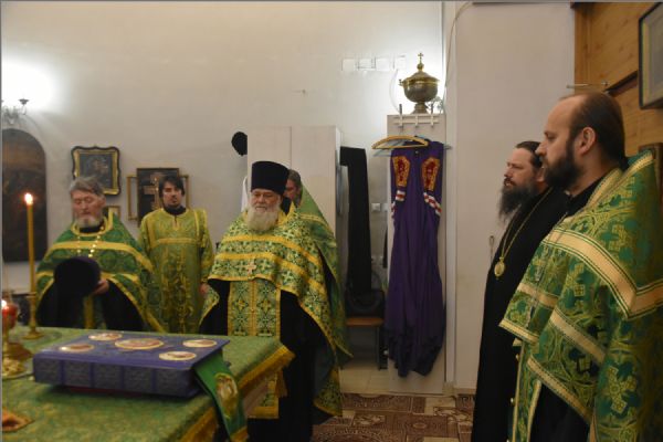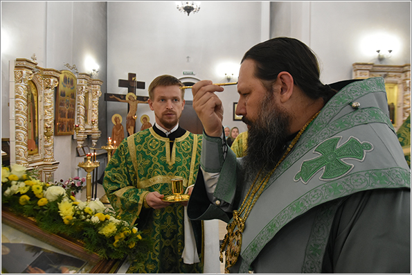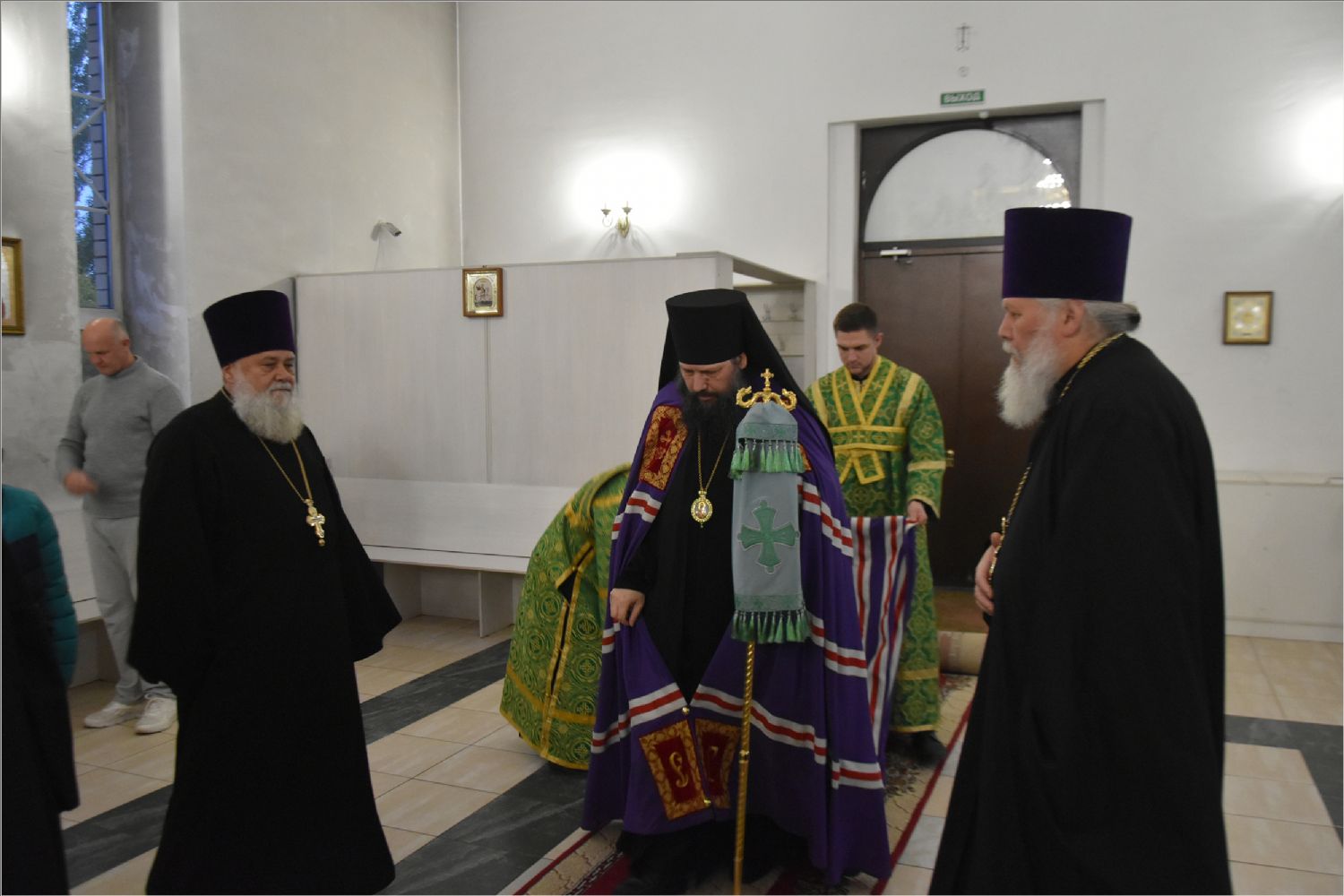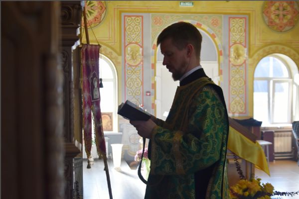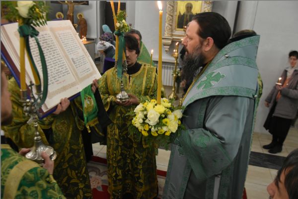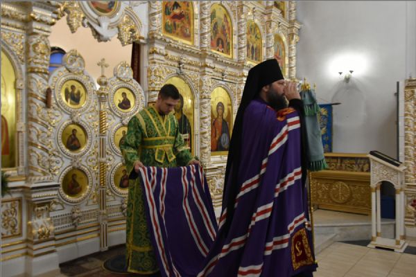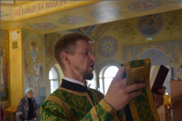 На мирной и сугубой ектениях были вознесены молитвы о Российском воинстве и о мире. По запричастном стихе проповедь произнёс протоиерей Рафаил Миронов.