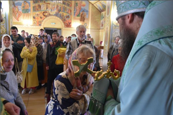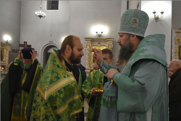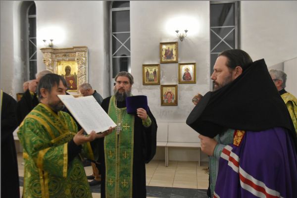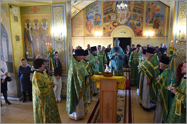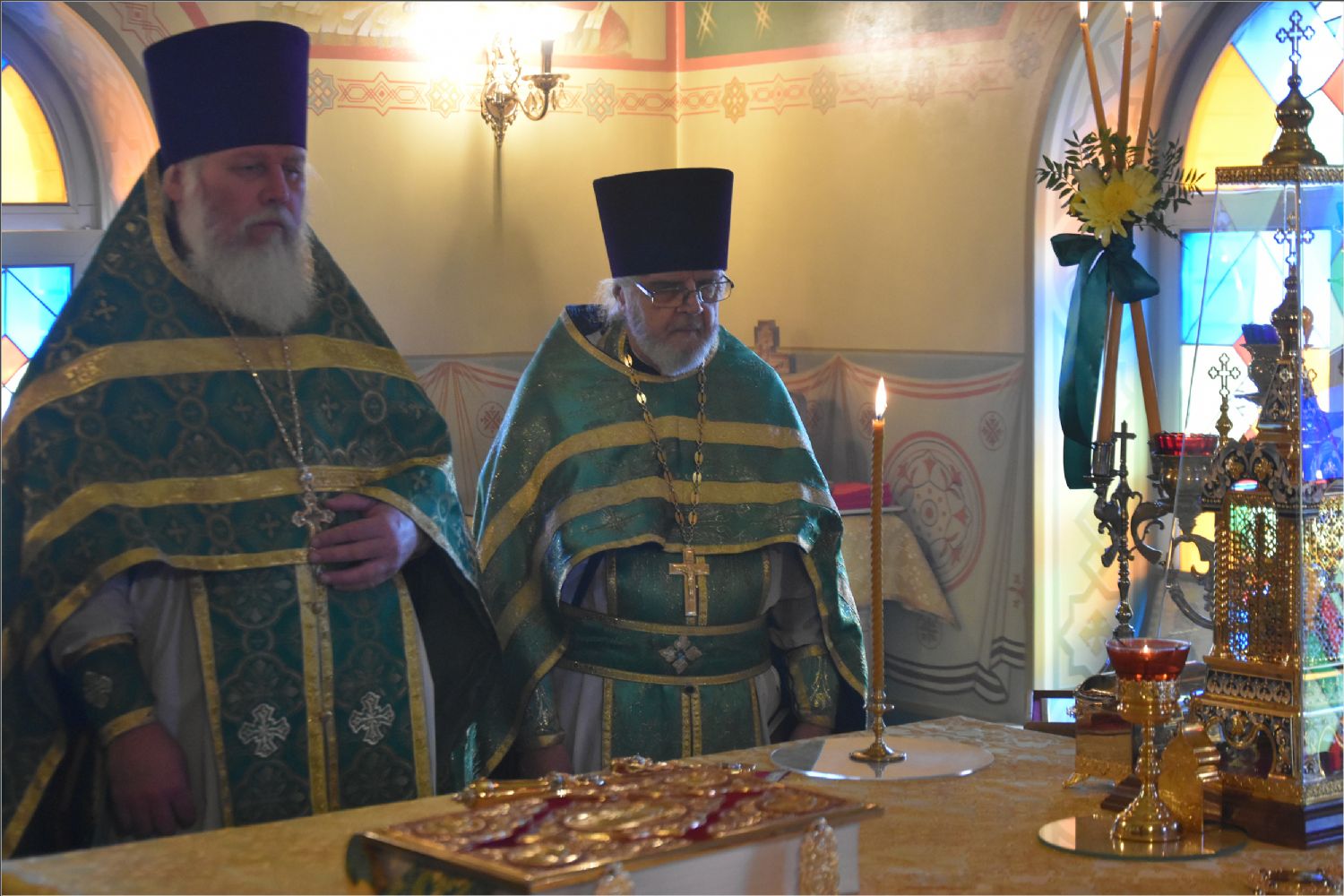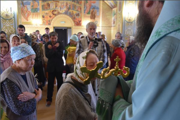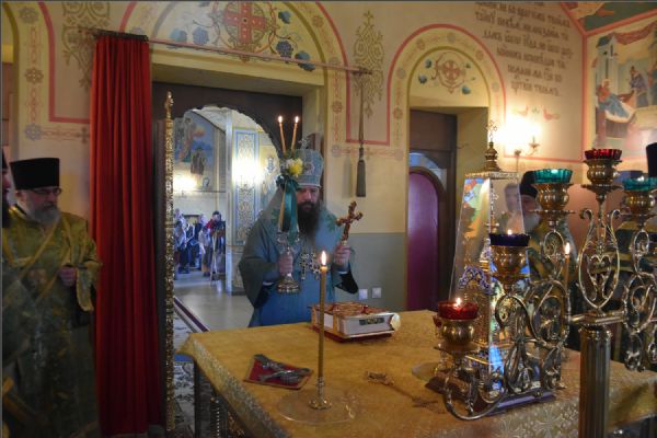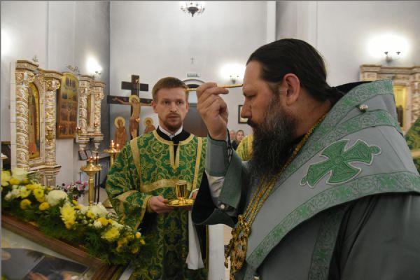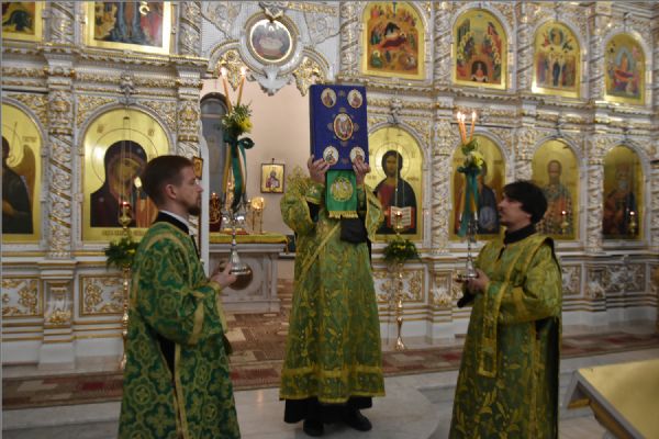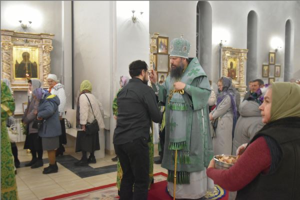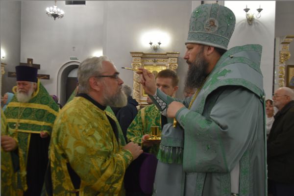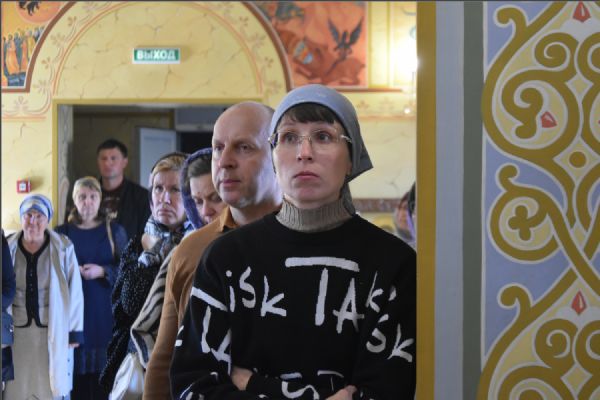 На мирной и сугубой ектениях были вознесены молитвы о Российском воинстве и о мире. По запричастном стихе проповедь произнёс протоиерей Рафаил Миронов.