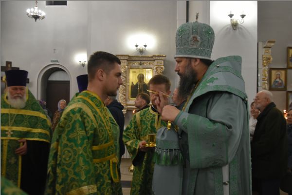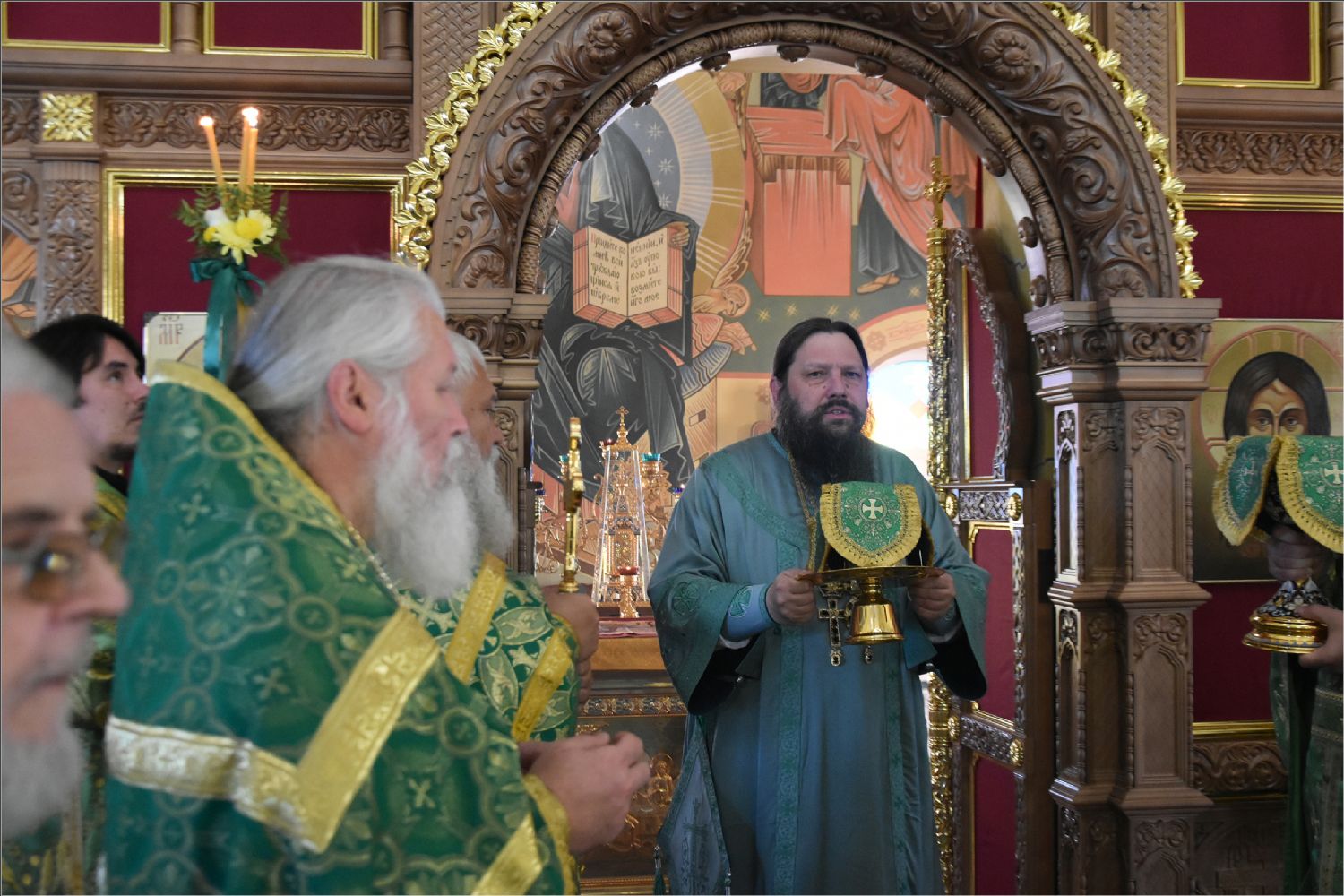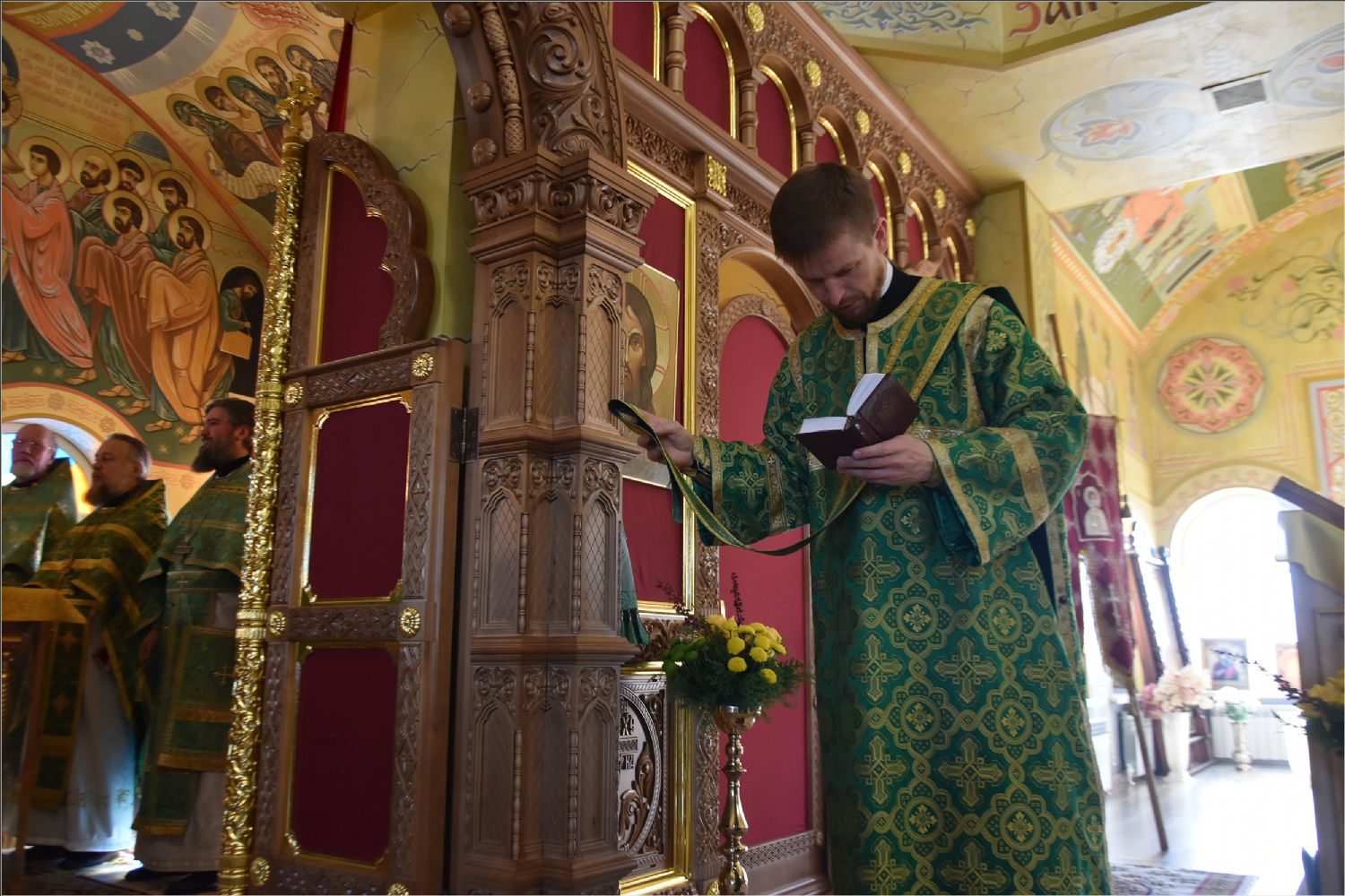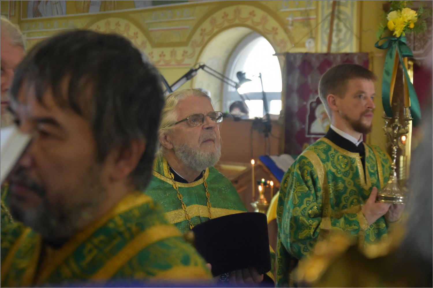 Его Преосвященству сослужили секретарь Набережночелнинской епархии протоиерей Андрей Лосык, благочинный Закамского округа протоиерей Андрей Дубровин, настоятель храма великомученика Георгия Победоносца города Набережные Челны протоиерей Валерий Каранаев, настоятель храма иконы Божией Матери «Неупиваемая Чаша» города Набережные Челны протоиерей Владимир Иванов, настоятель церкви Святой Троицы села Большая Шильна протоиерей Рафаил Миронов, клирик Георгиевского храма иерей Василий Федосеев. Диаконский чин возглавил протодиакон Дмитрий Половников. Богослужебные песнопения исполнил приходской смешанный хор под управлением Натальи Пиминовой.