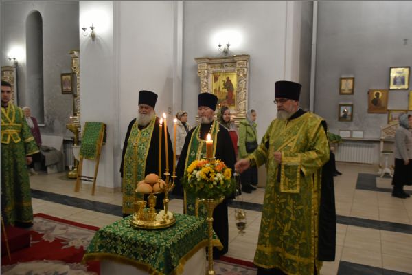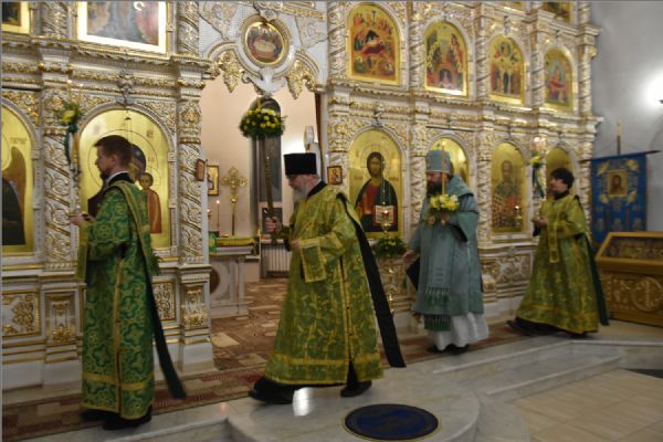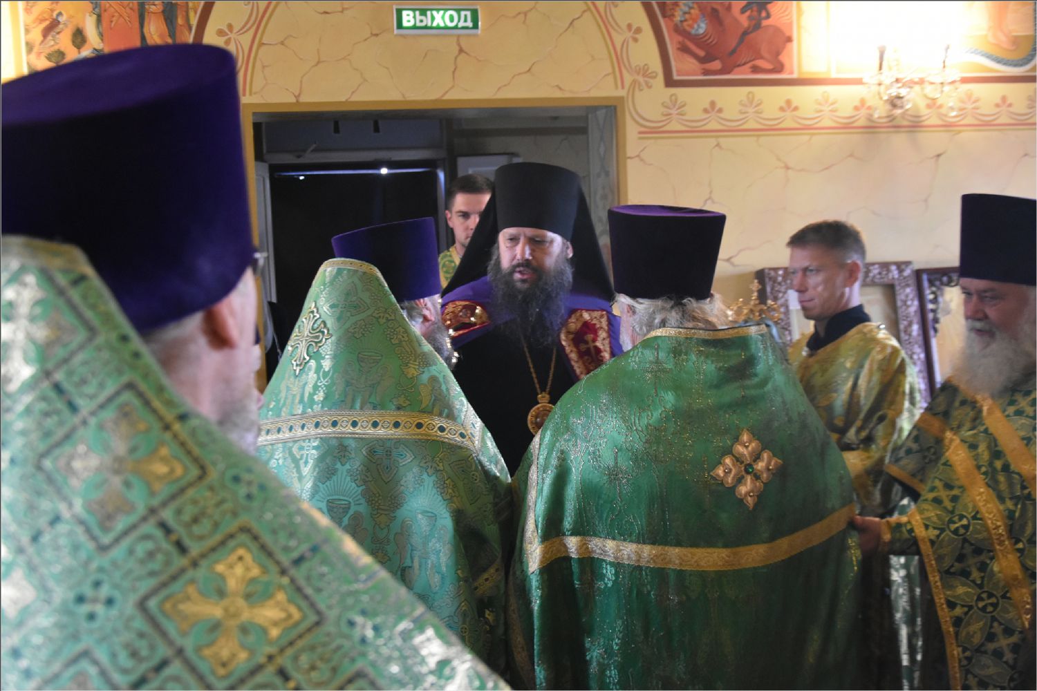 Архипастырю сослужили секретарь Набережночелнинской епархии протоиерей Андрей Лосык, благочинный Закамского округа протоиерей Андрей Дубровин, настоятель храма иконы Божией Матери «Неупиваемая Чаша» города Набережные Челны протоиерей Владимир Иванов, клирики Казанского храма иерей Алексий Носов и иерей Иоанн Можаев. Диаконский чин возглавил протодиакон Дмитрий Половников. Богослужебные песнопения исполнил приходской смешанный хор под управлением Татьяны Вылку.