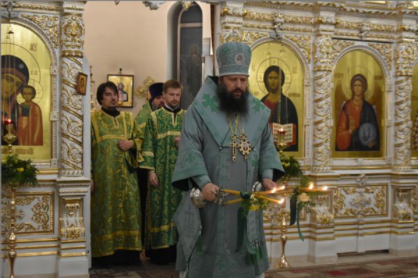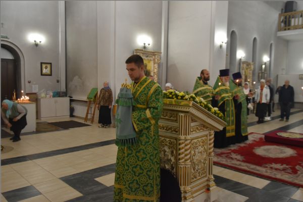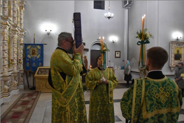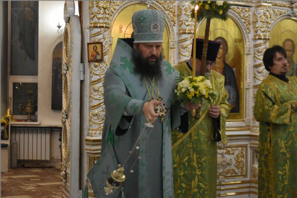На Полиелее было воспето величание преподобному Сергию Радонежскому и архипастырь прочитал праздничный евангельский отрывок.