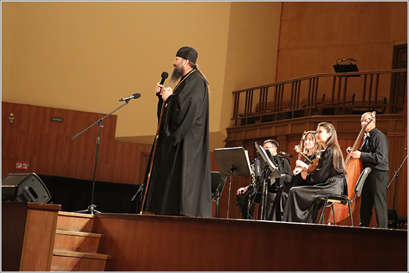 Епископ Набережночелнинский и Елабужский Гавриил посетил концерт. Архипастырь поднялся на сцену по приглашению руководителя ансамбля Эльвиры Федоровой, и обратился к зрителям и музыкантам: