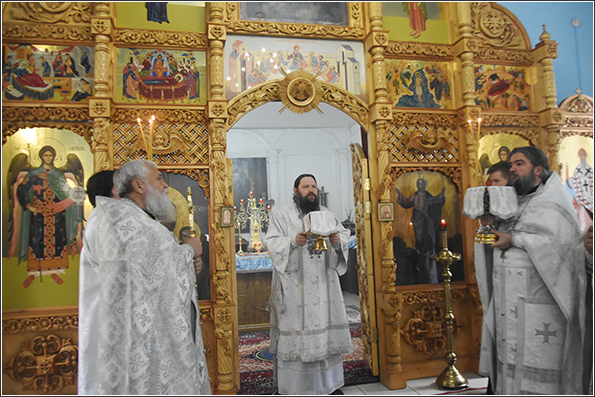 На мирной и сугубой ектениях были вознесены молитвы о Российском воинстве и о мире. На службе возносились заупокойные прошения.
