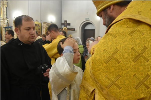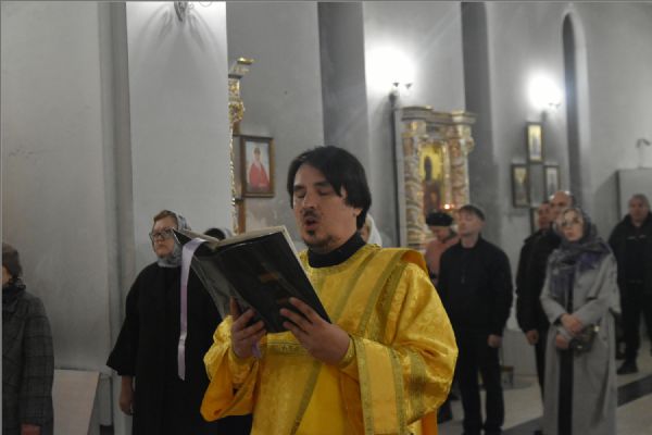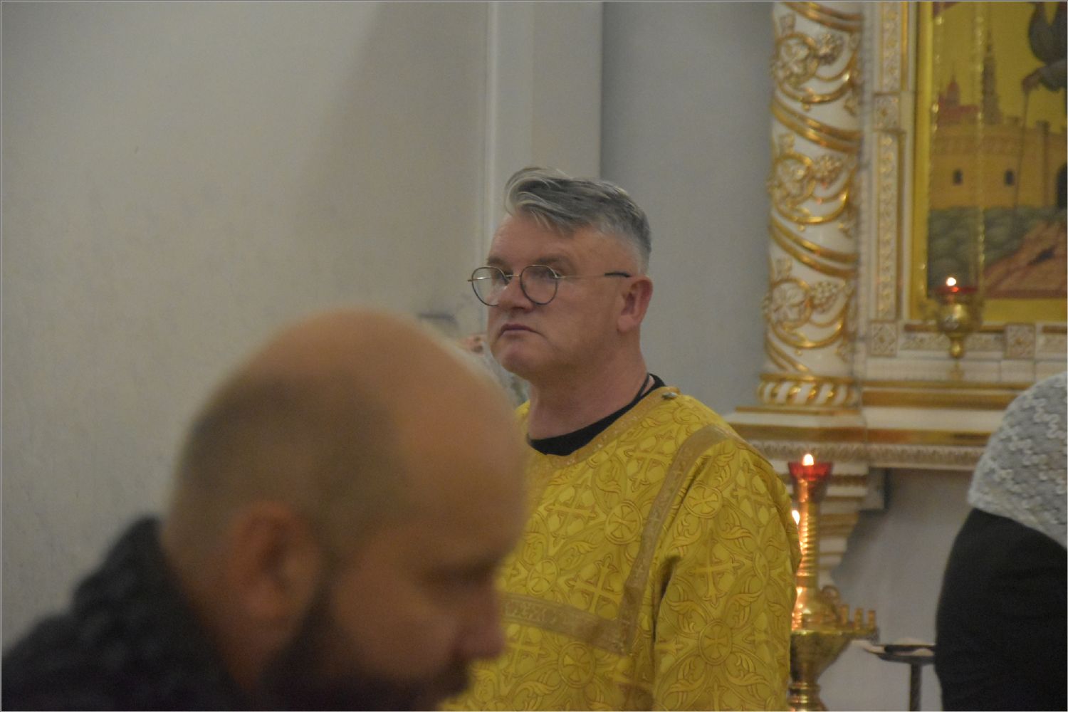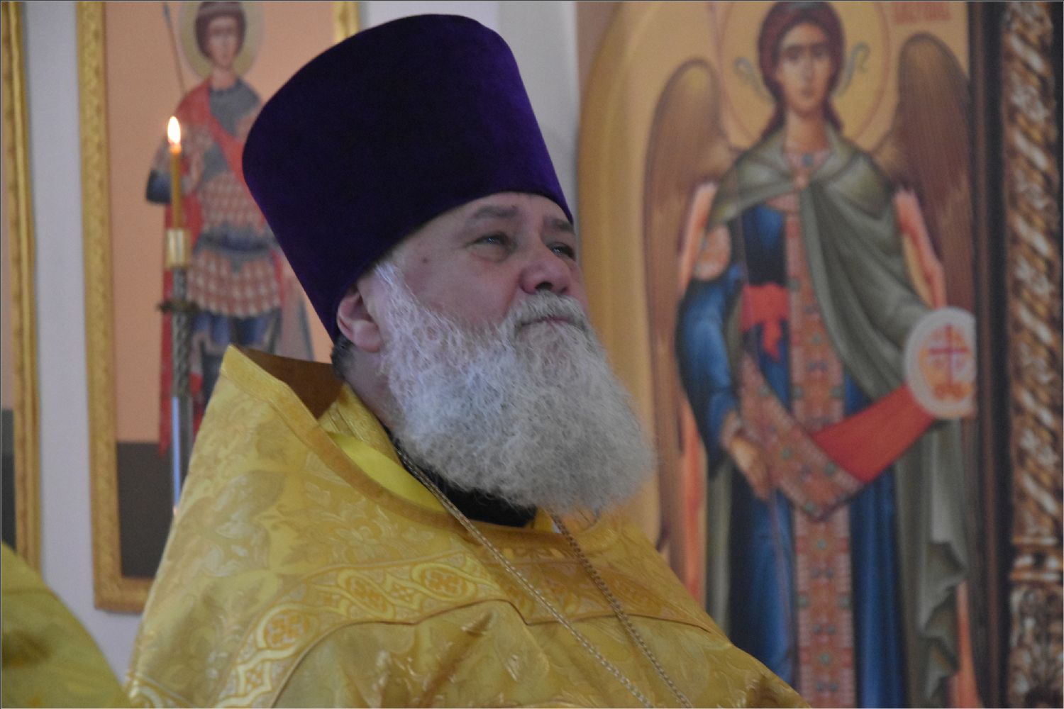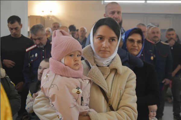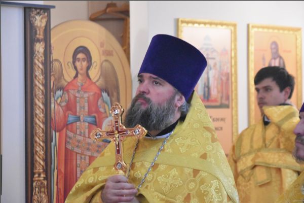 На мирной и сугубой ектениях были вознесены молитвы о Российском воинстве и о мире. По запричастном стихе проповедь произнёс протоиерей Андрей Дубровин.