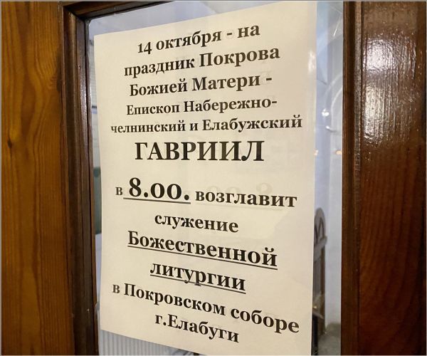 14 октября, в день Покрова Пресвятой Владычицы нашей Богородицы и Приснодевы Марии, Его Преосвященство владыка Гавриил возглавил престольные торжества в Покровском соборе города Елабуги.