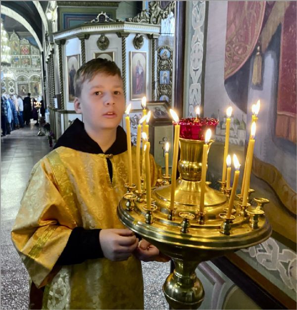 На мирной и сугубой ектениях были вознесены молитвы о Российском воинстве и о мире. По запричастном стихе проповедь произнёс иеромонах Феодор (Деревнин).