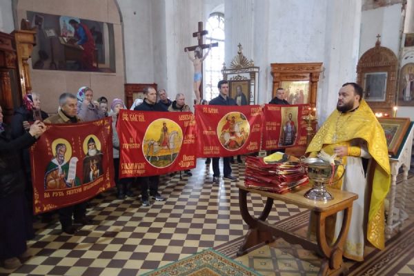 В преддверии 80-летия Великой Победы «Серебряные волонтёры» и молодогвардейцы совершили поистине подвижнический труд, пошив 80 знамён. Этот символ памяти и духовной силы был освящён в Спасском соборе после воскресной литургии 12 октября.
