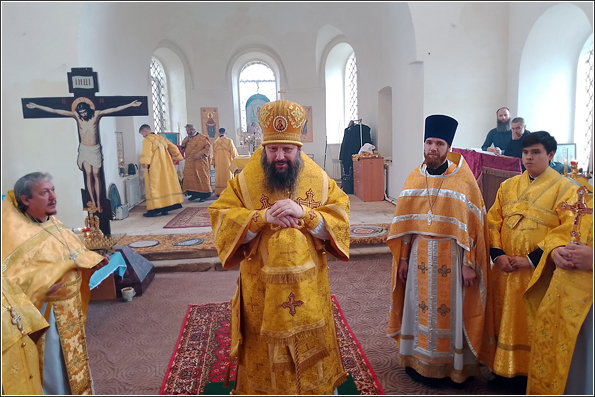 Проповедь по запричастном стихе произнёс иерей Евгений Любимов. В конце службы владыка обратился к собравшимся сельчанам со словами архипастырского наставления, в которых обратил внимание верующих на то, сколь важно участие в Божественной литургии, а также поминовение живых и усопших за этой самой главной службой Церкви.