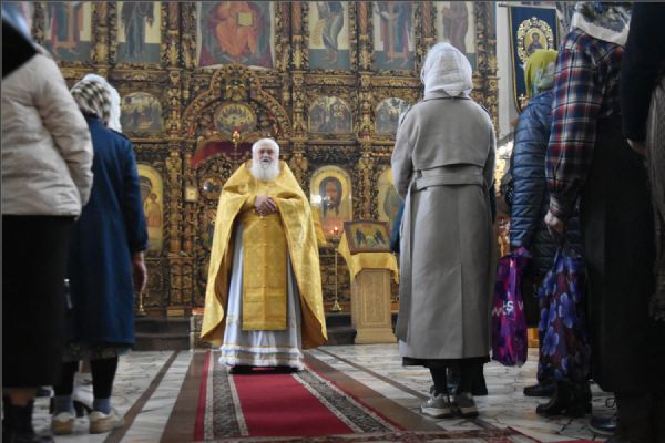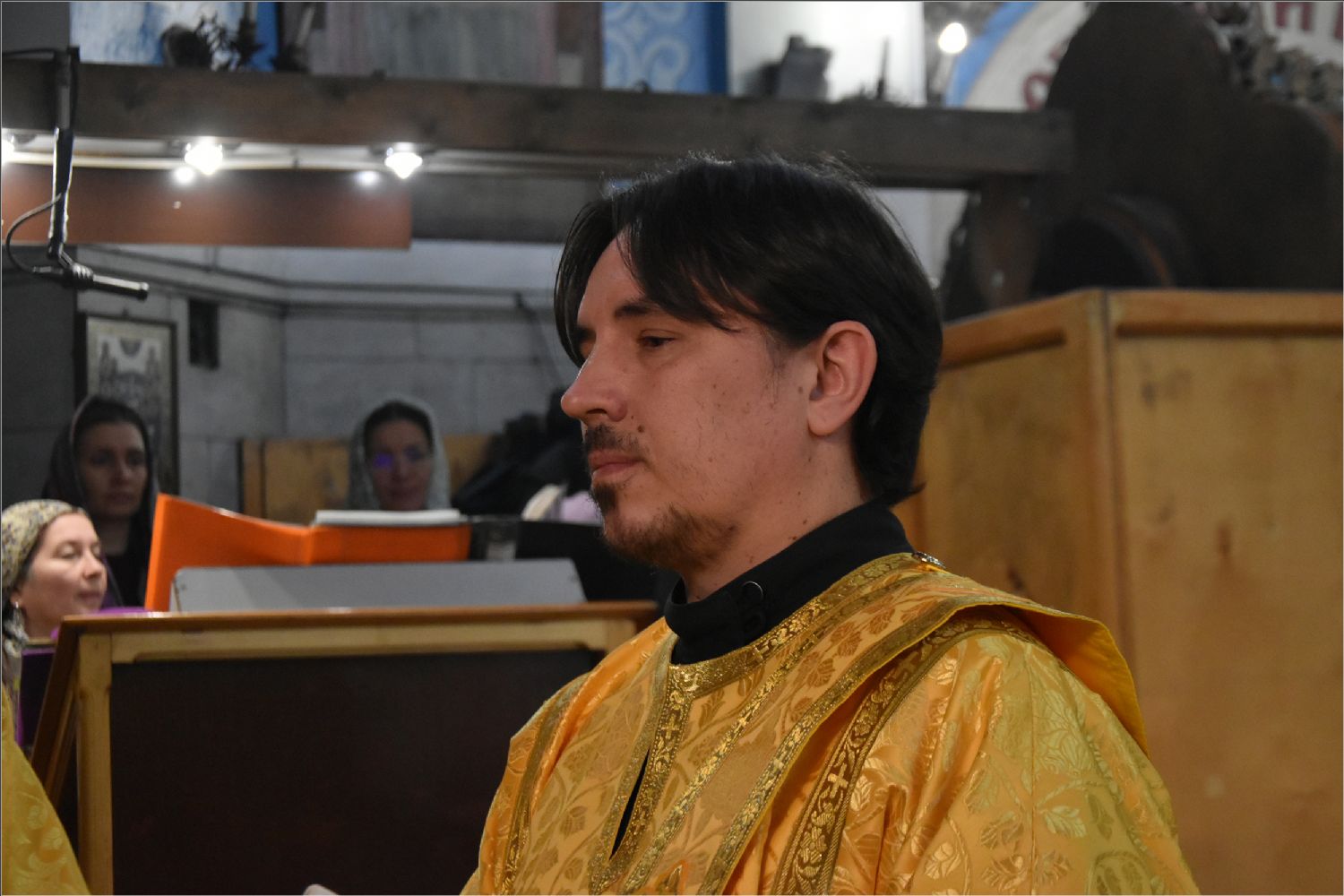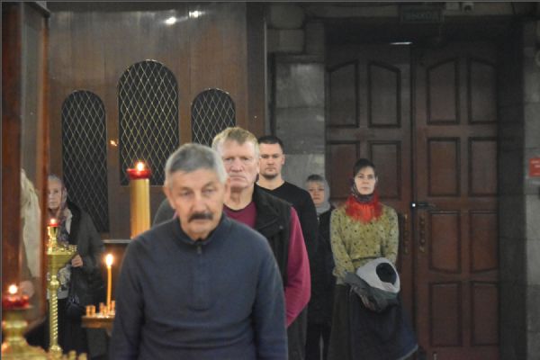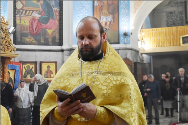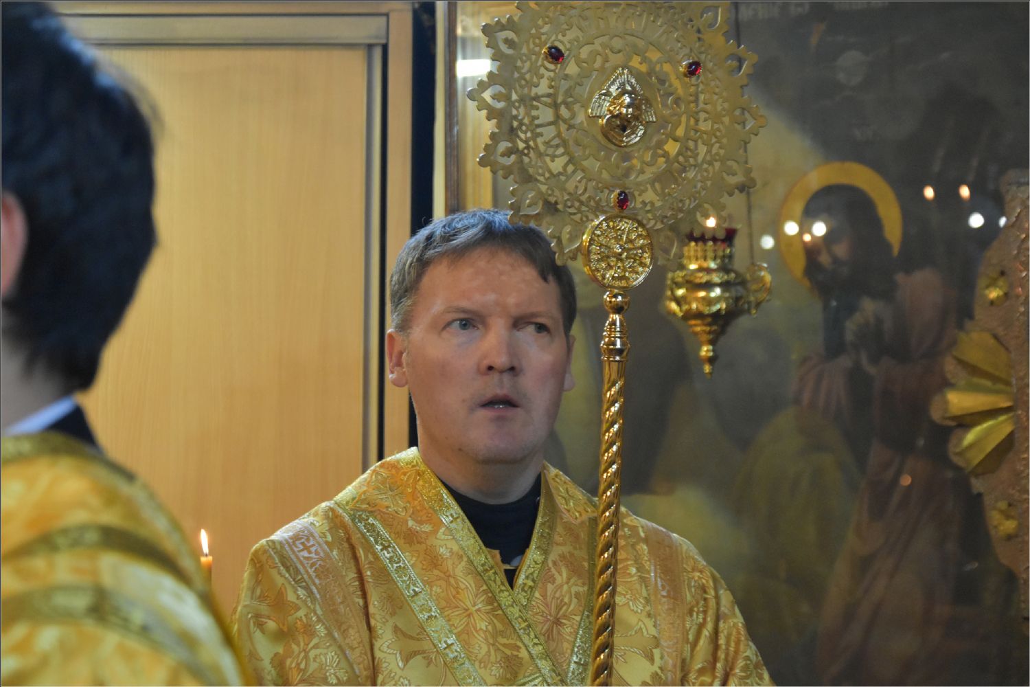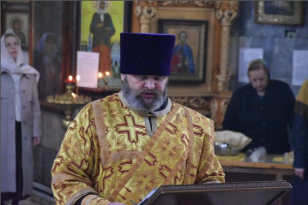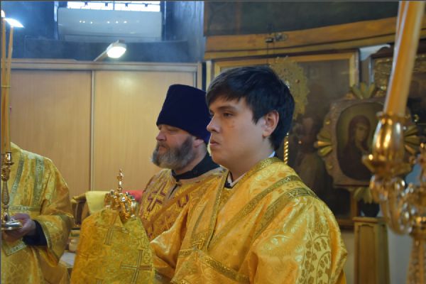 На мирной и сугубой ектениях были вознесены молитвы о Российском воинстве и о мире. По запричастном стихе проповедь произнёс протоиерей Андрей Дубровин.