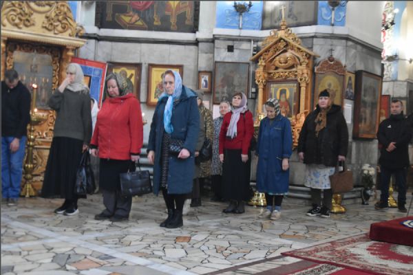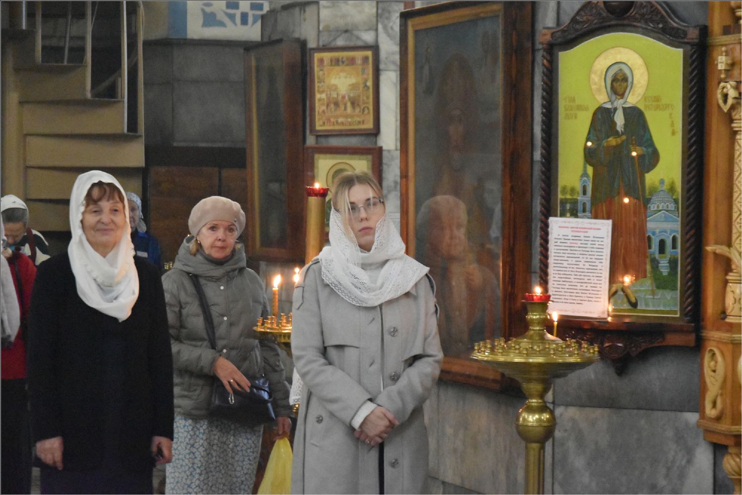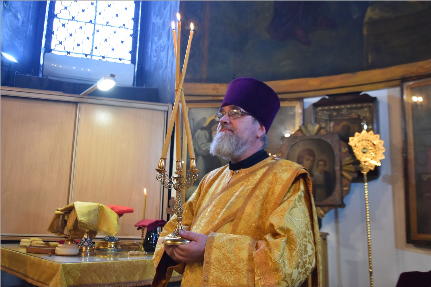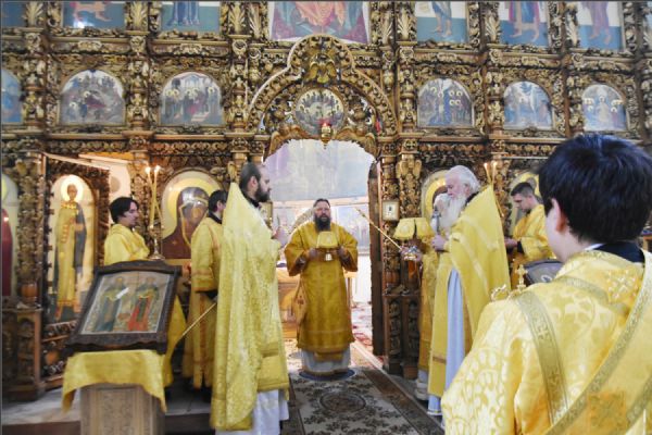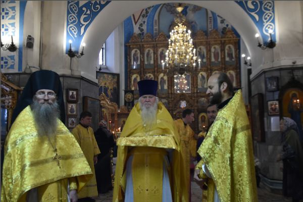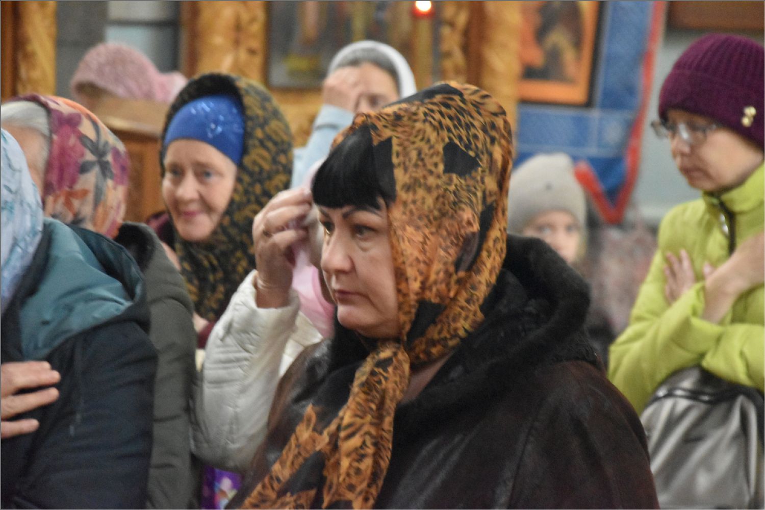 На мирной и сугубой ектениях были вознесены молитвы о Российском воинстве и о мире. По запричастном стихе проповедь произнёс протоиерей Андрей Дубровин.