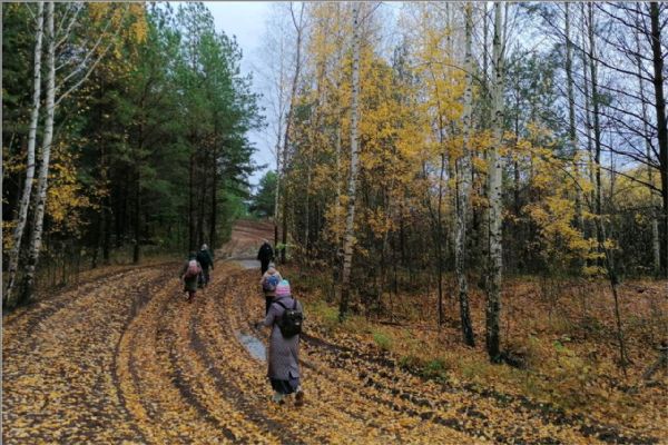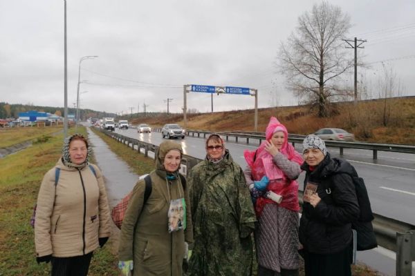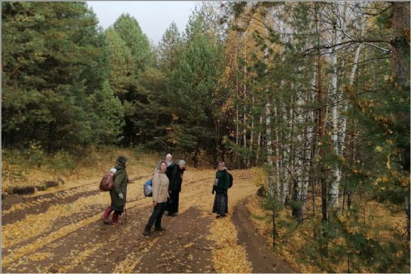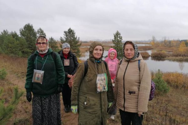 «От моросящего дождика песок был мокрый. Идти по песку не совсем легко, ноги проваливаются, но песок всегда лучше, чем грязь. По дороге на песке видели множество следов разных животных: лосей, кабанов, лис и еще неизвестных нам следов. Видимо, животные ходят на водопой к Каме, поэтому все следы строго пересекали песчаную трассу. С погодой нам тоже повезло — после моросящего дождя выглянуло солнце, так что мы даже успели посидеть на привале, погреться, немного обсушиться. Ходить по лесам и полям — это для нас счастье. Нелегко идти возле автотрассы, где шум, брызги и выхлопные газы от проезжающих машин. Но здесь свои плюсы: проезжая на машинах, люди видят нас, идущих с иконами, некоторые приветствуют короткими сигналами, а другие в суете земной может на минутку задумаются о небесном мире. Мы, христиане, любыми доступными методами должны нести свою миссию в мир», — делится своими впечатлениями и мыслями руководитель клуба Татьяна Лебедева.