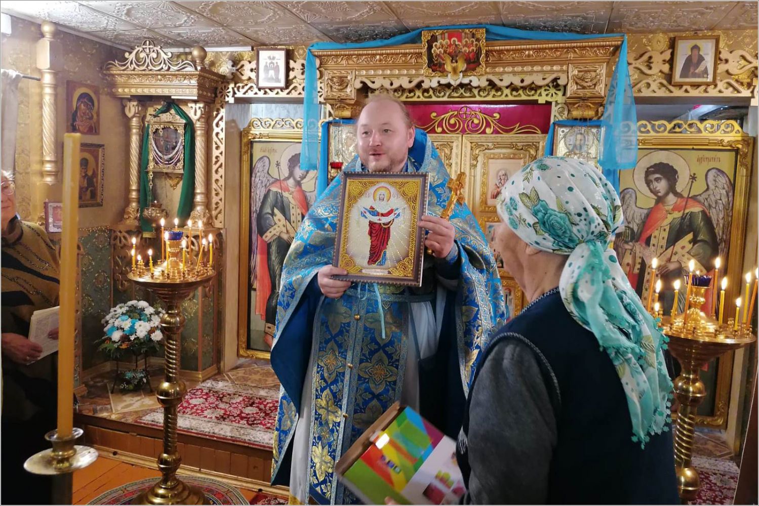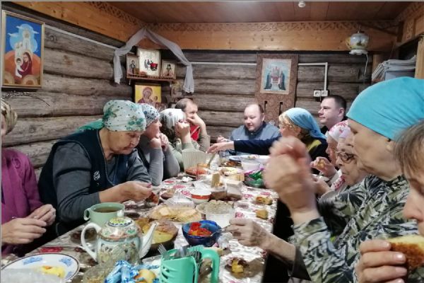 В день праздника отец Кирилл отслужил Литургию, на которой причастились все прихожане и гости. В этой церкви во время Всенощной и Литургии поют все, кто пришел помолиться. После Литургии прошли крестным ходом вокруг церкви. Прихожане церкви подарили своему настоятелю икону Покрова Божией Матери. Отец Кирилл поздравил всех с праздником, поблагодарил за совместную службу, сказал теплые напутственные и назидательные слова, затем всех пригласил на праздничную трапезу.