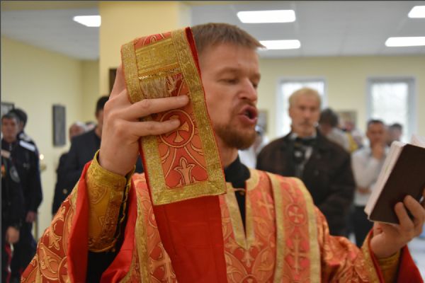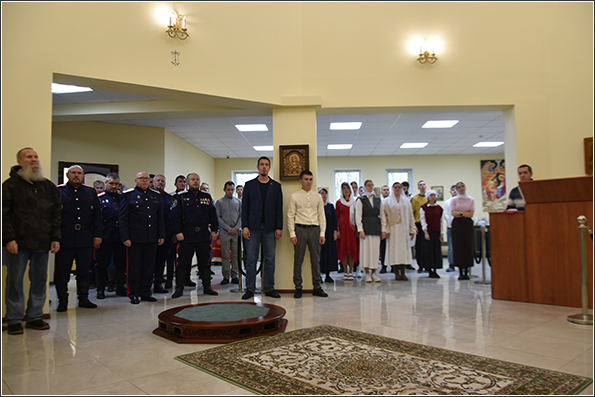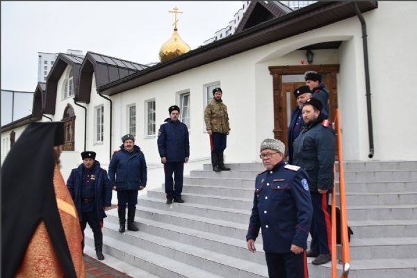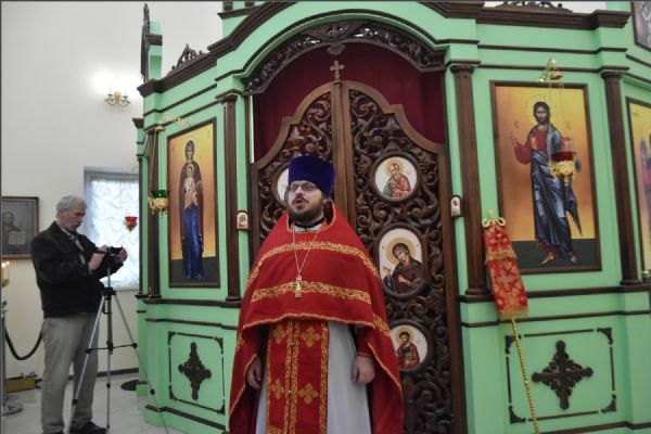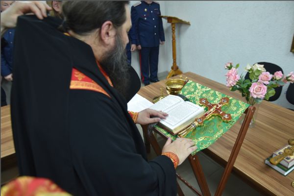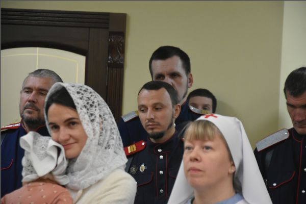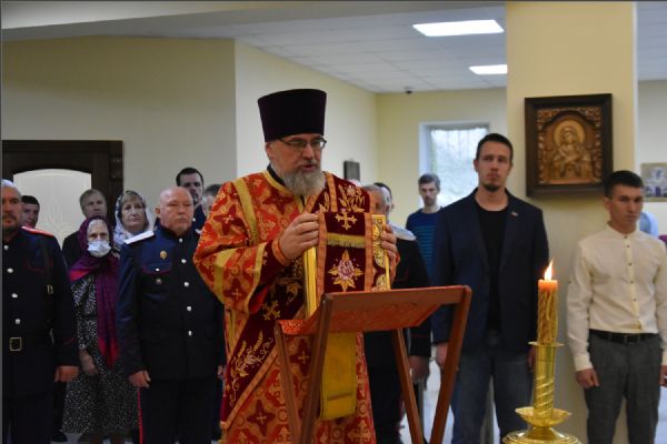 На мирной и сугубой ектениях были вознесены молитвы о Российском воинстве и о мире. Проповедь по запричастном стихе произнес иерей Александр Макариков.