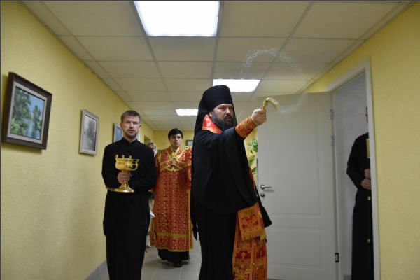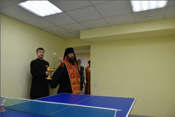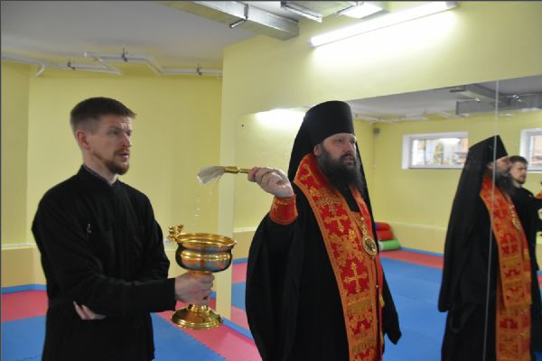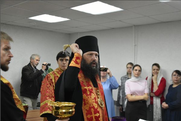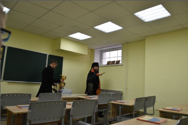Затем епископ Гавриил совершил чин молебного пения на освящение учебного заведения и освятил помещения духовно-просветительского центра в цокольном этаже административного корпуса прихода преподобного Серафима Саровского.