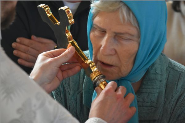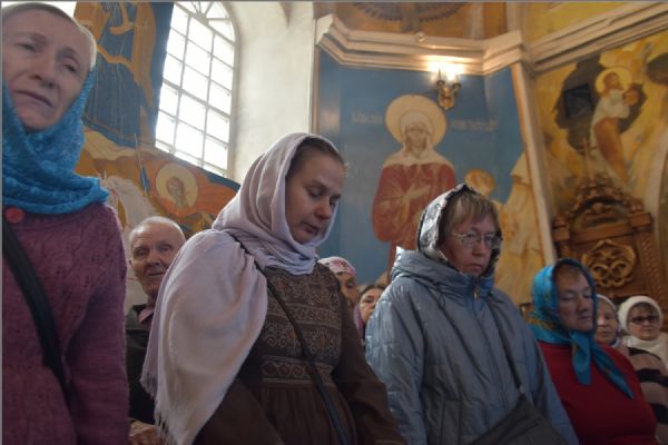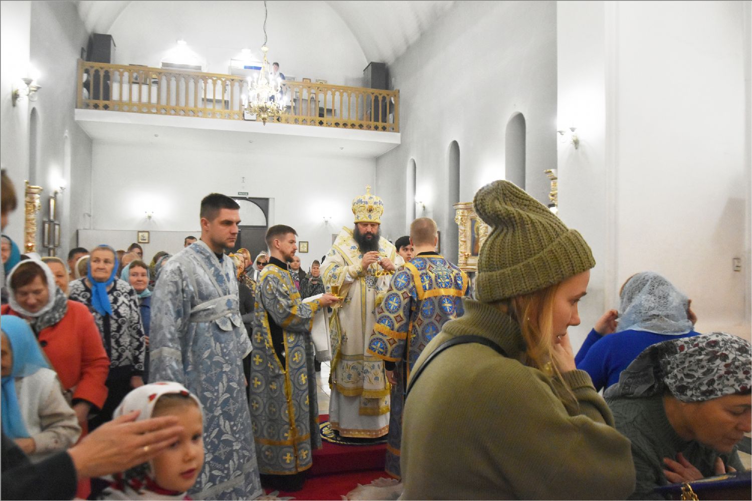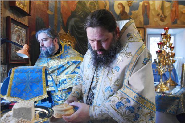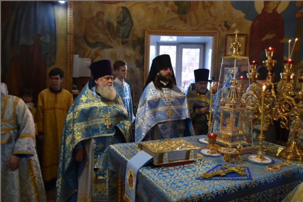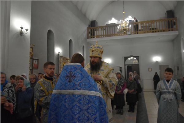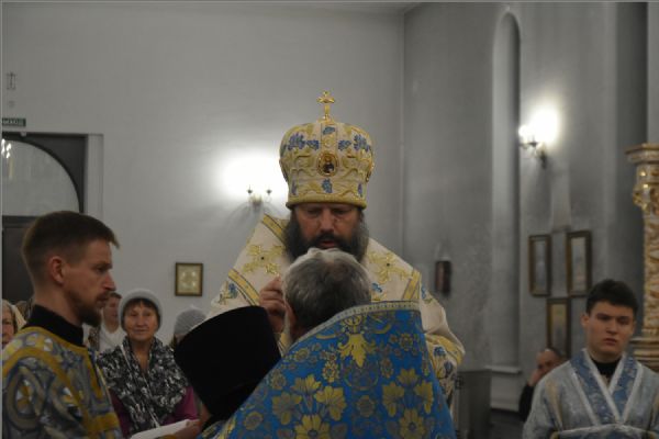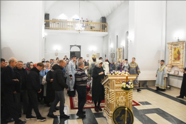 На Полиелее было прочитано воскресное евангелие и воспето величание Пресвятой Богородице.