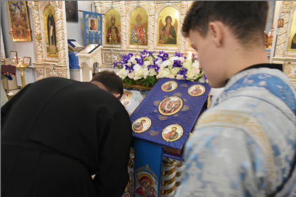 В завершение духовенство и верующие пропели молитву «Царице моя Преблагая» в величание Божией Матери у чествуемого Иверского образа Пресвятой Богородицы.