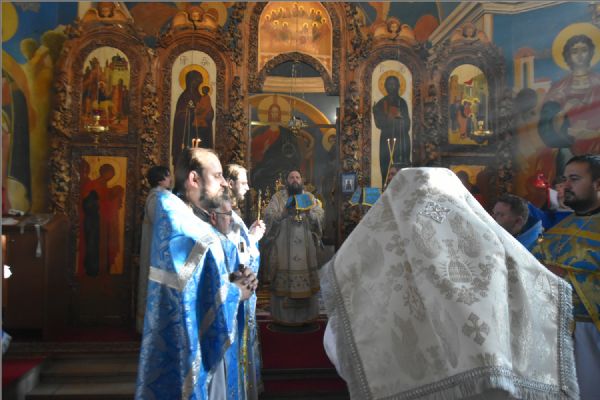 Его Преосвященству сослужили секретарь Набережночелнинской епархии, настоятель храма Космы и Дамиана города Набережные Челны протоиерей Андрей Лосык, благочинный Закамского округа протоиерей Андрей Дубровин, благочинный Елабужского округа иеромонах Кирилл (Забавнов), настоятель храма преподобного Серафима Саровского города Набережные Челны иеромонах Амвросий (Степанюк), настоятель храма святителя Николая Чудотворца города Набережные Челны иерей Александр Ворошилов, клирики прихода Космы и Дамиана иерей Сергий Пичугин и иерей Сергий Саутин, а также клирик храма Казанской иконы Божией Матери города Набережные Челны иерей Иоанн Можаев. Диаконский чин возглавил протодиакон Дмитрий Половников.