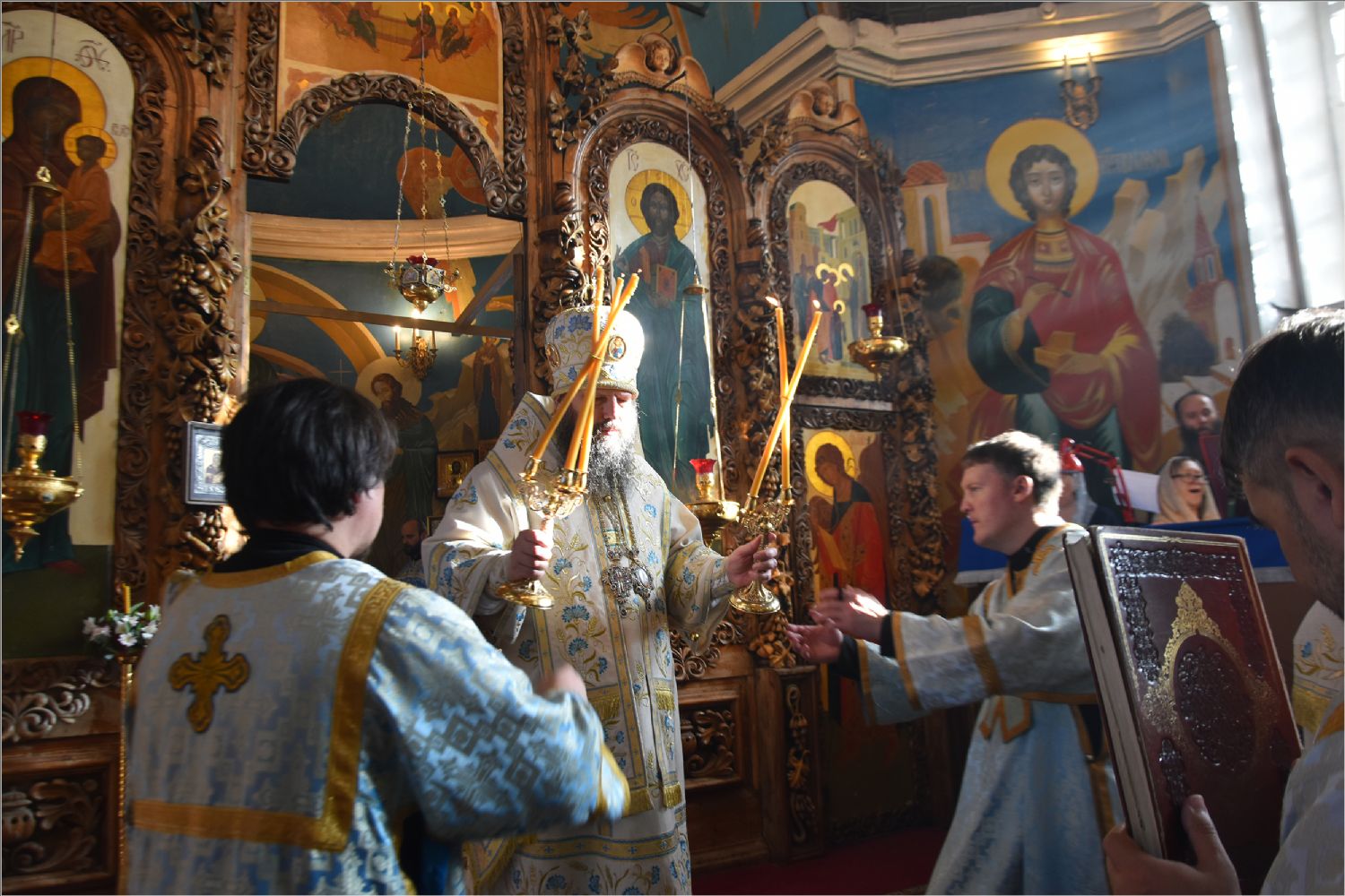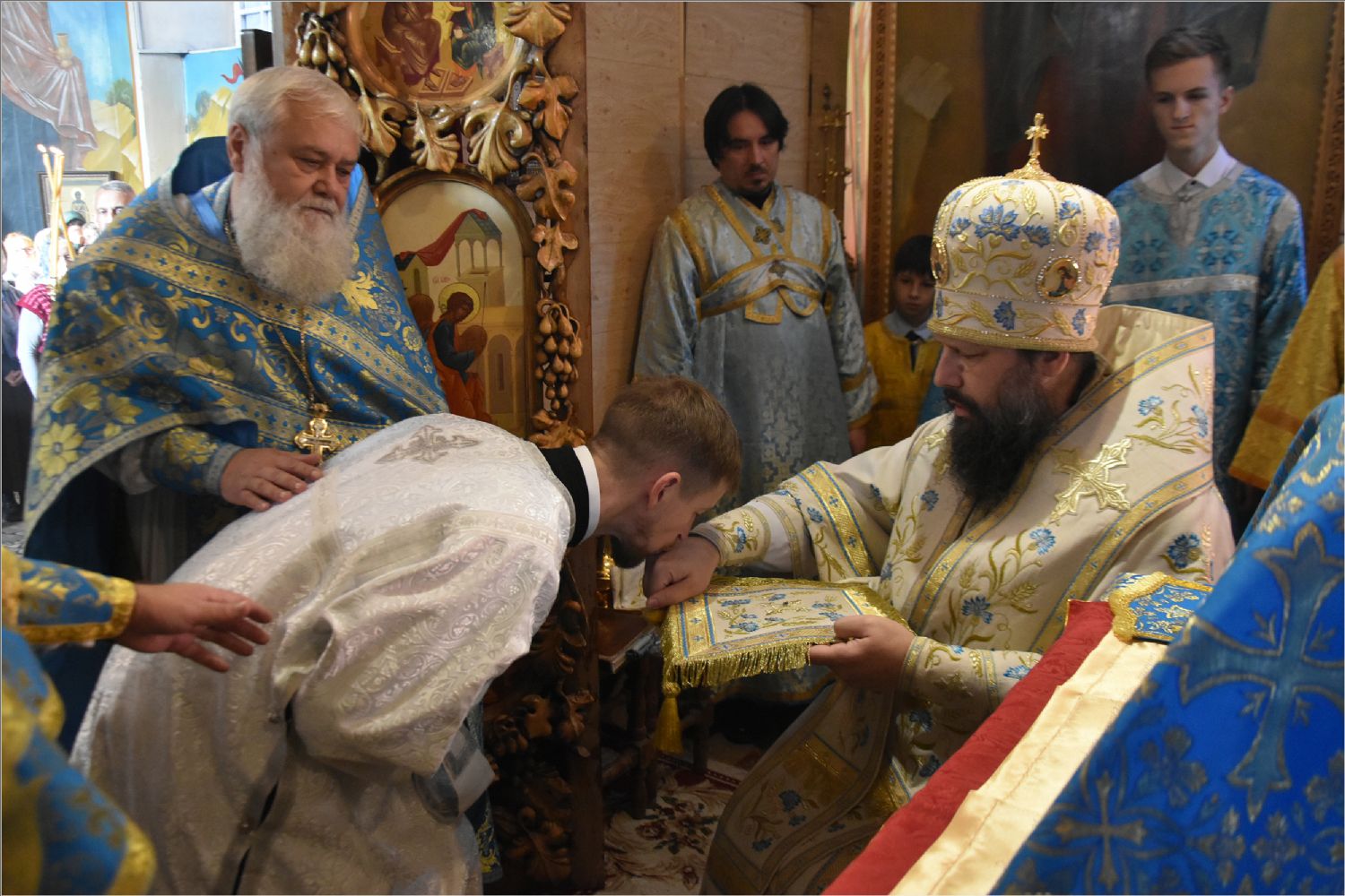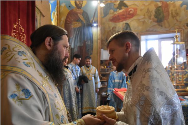 За богослужением епископ Гавриил совершил священническую хиротонию клирика Свято-Вознесенского кафедрального собора диакона Сергия Иноземцева.