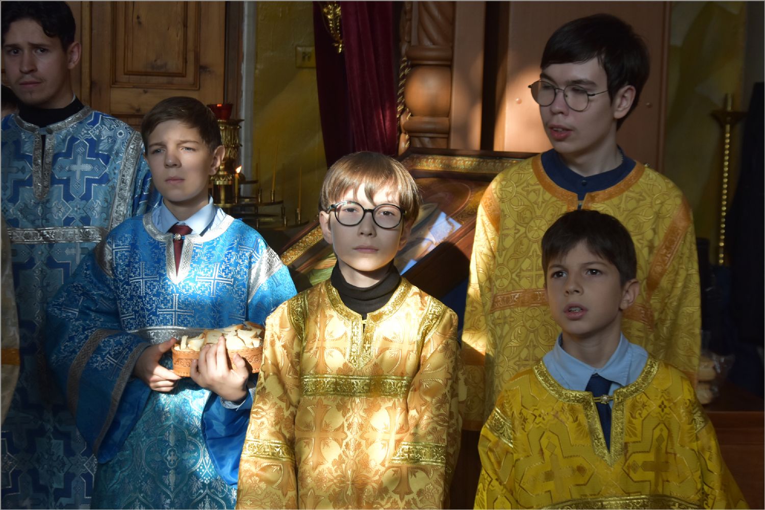 Богослужебные песнопения исполнил приходской хор под управлением Натальи Терентьевой и солист архиерейского хора Евгений Моромов.
